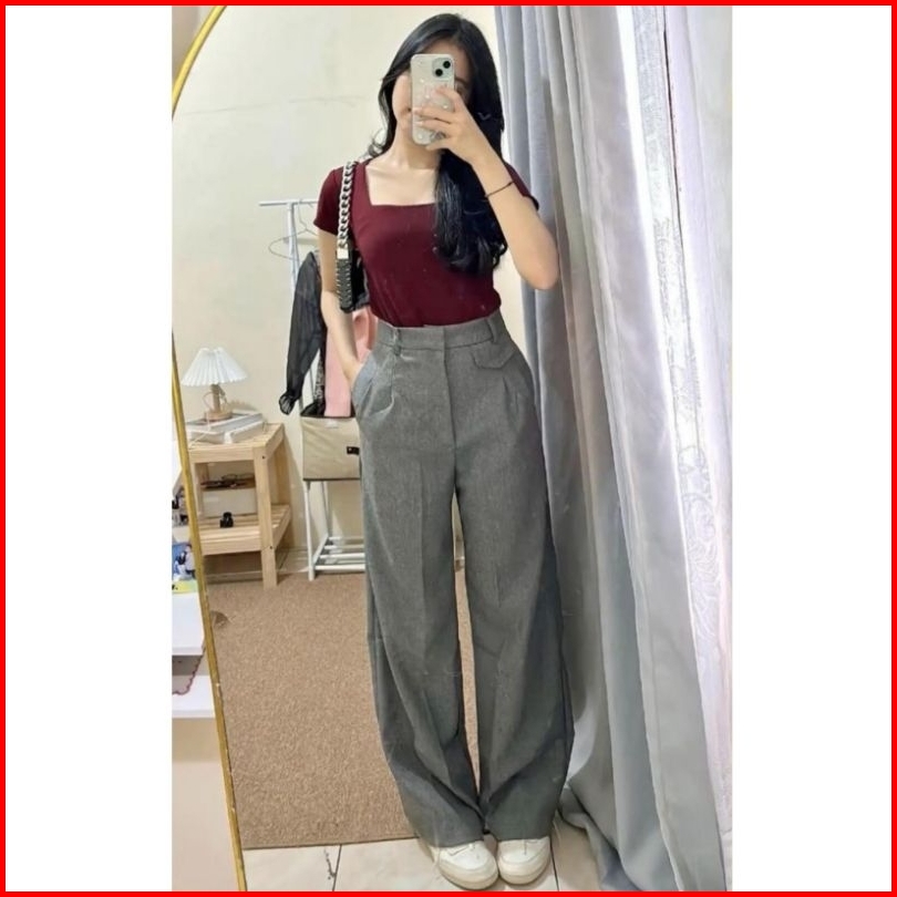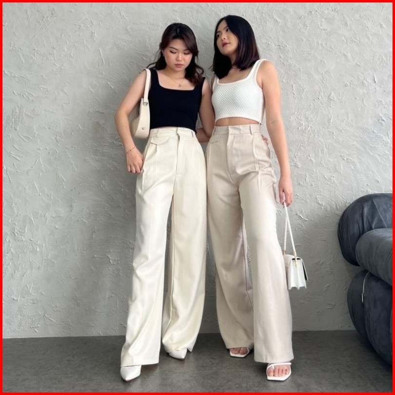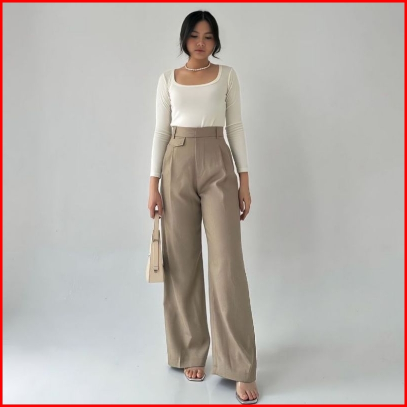 Oro Pants Celana Wanita Highwaist Panjang Kulot Bahan Anti Kusut Loose Pants Trouser Basic Kerja Korean Style