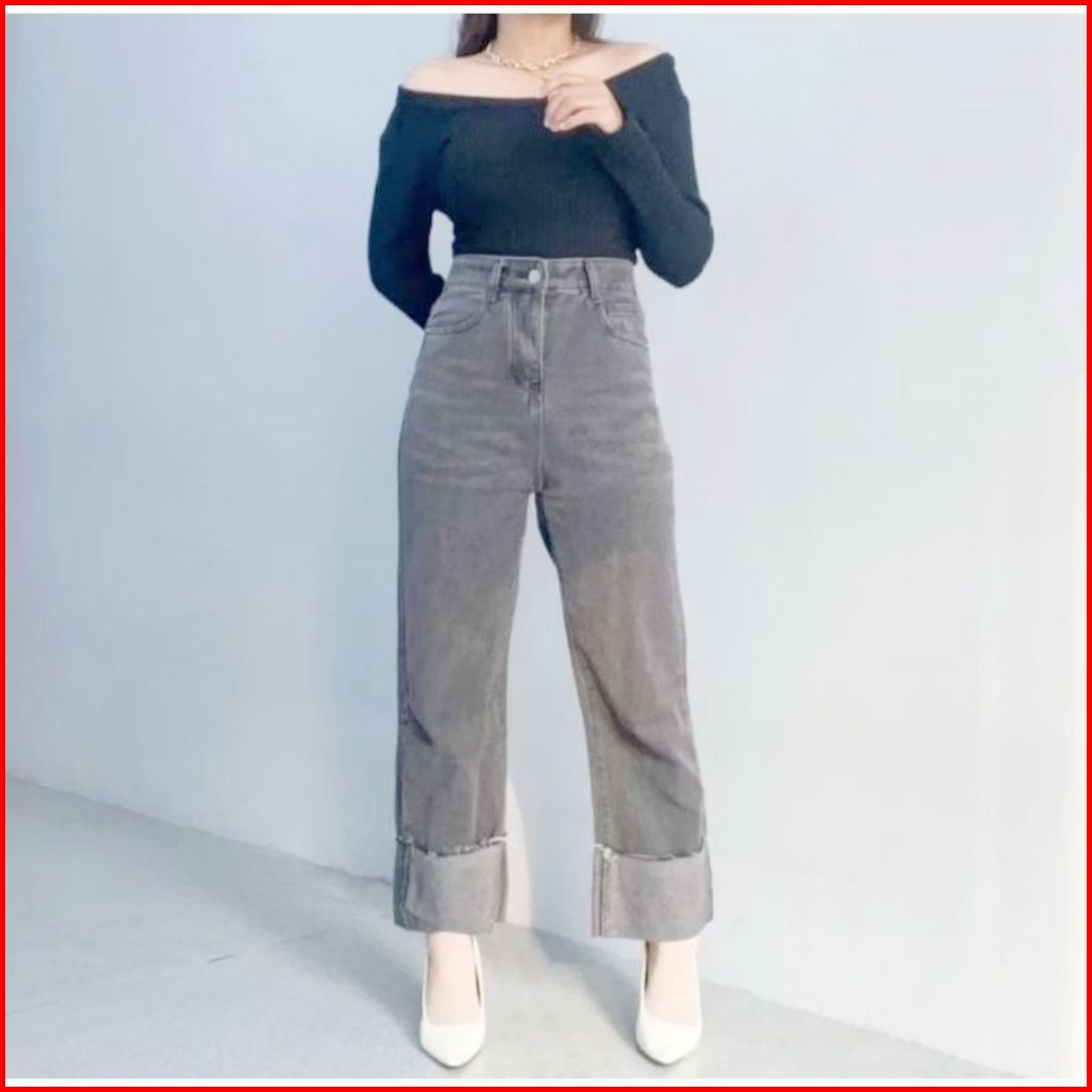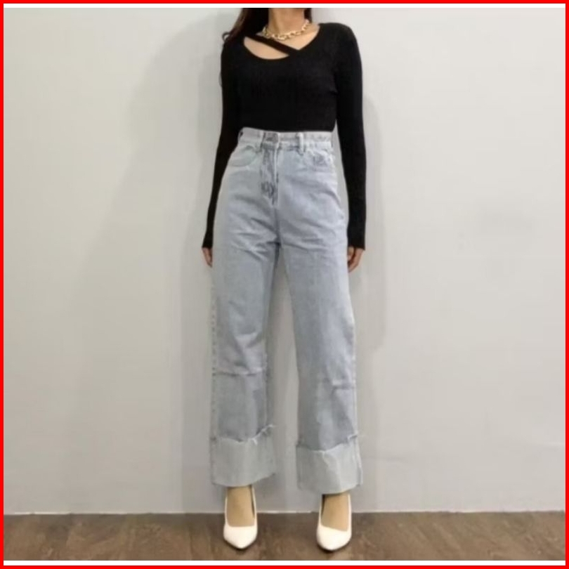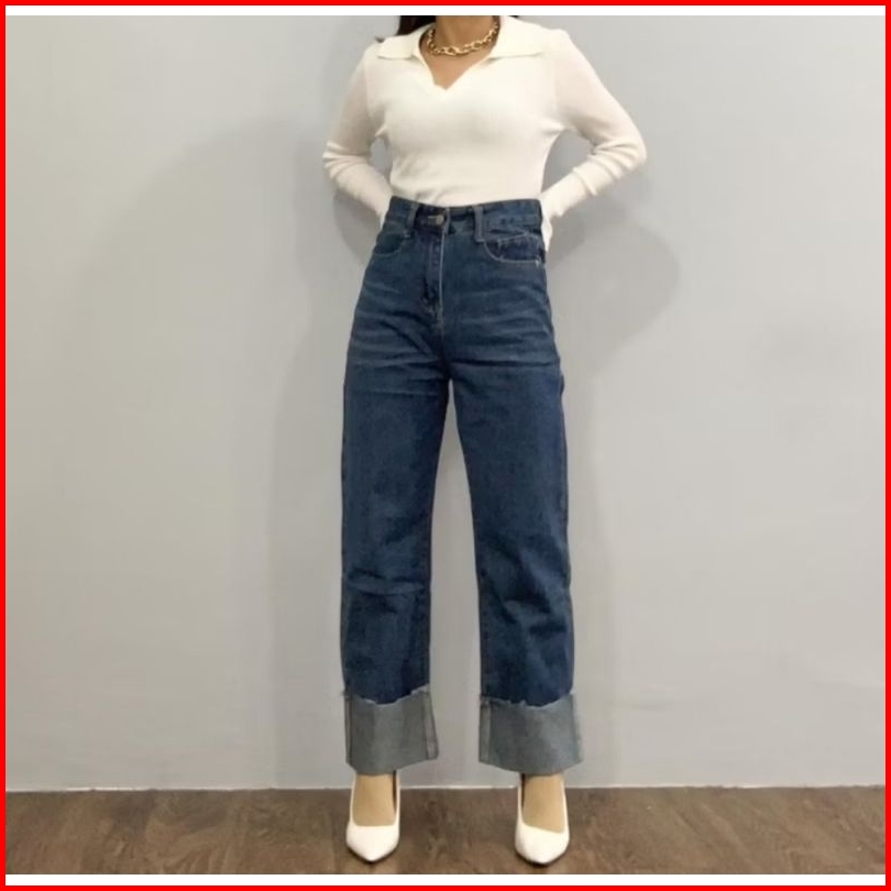 Metz - Celana Jeans E21 Jeans Highwaist Premium Wanita Lipat Bawah