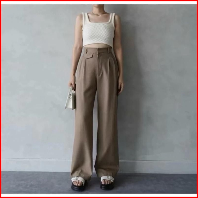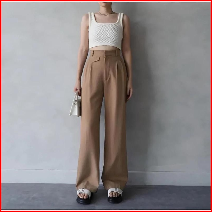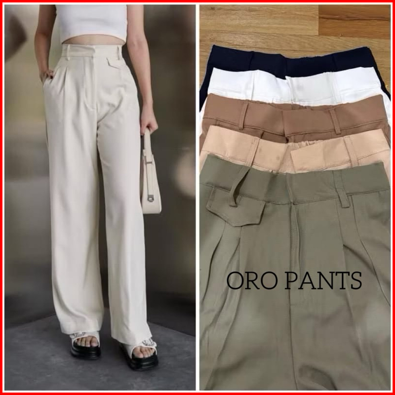 Celana Oro Pants Highwaist Loose Pants Trousers - Celana Anti Kusut Knit Premium