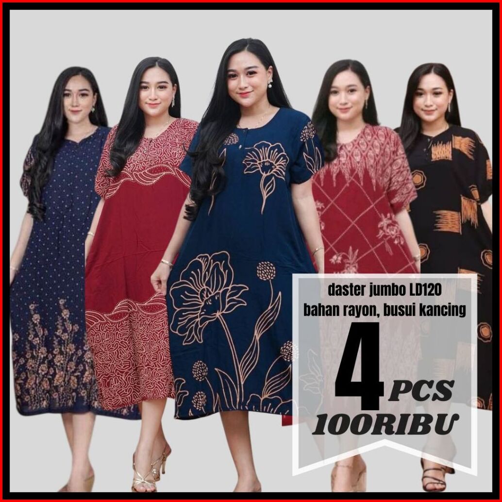 4 Pcs 100 Ribu Daster Jumbo Busui Kancing Lengan Pendek Daster Rayon Busui Daster Murah Viral