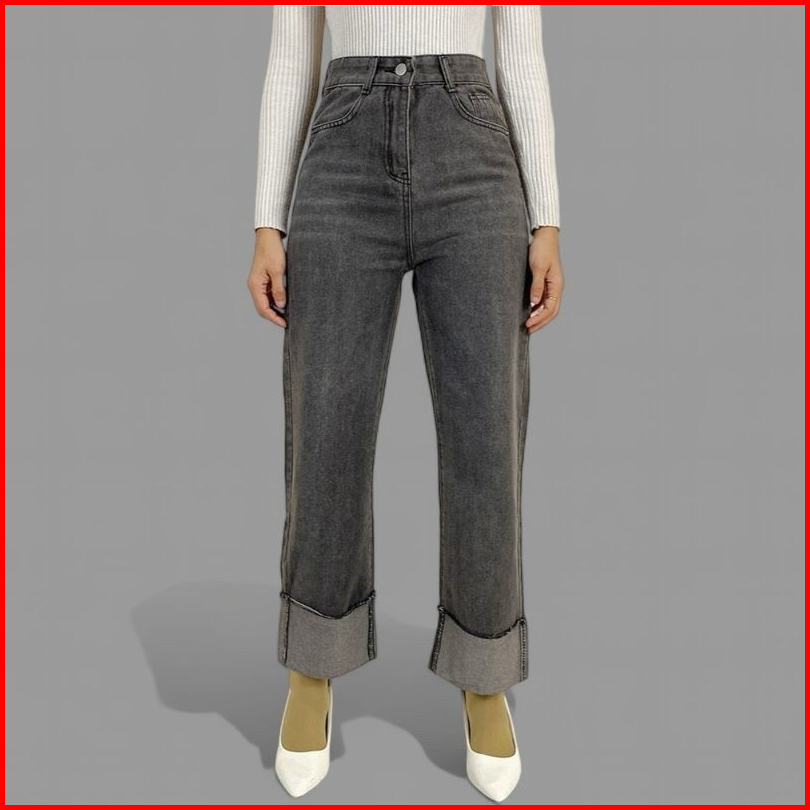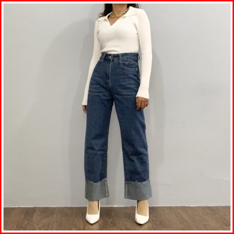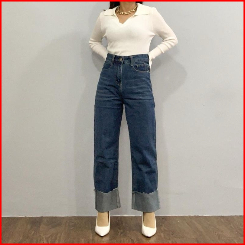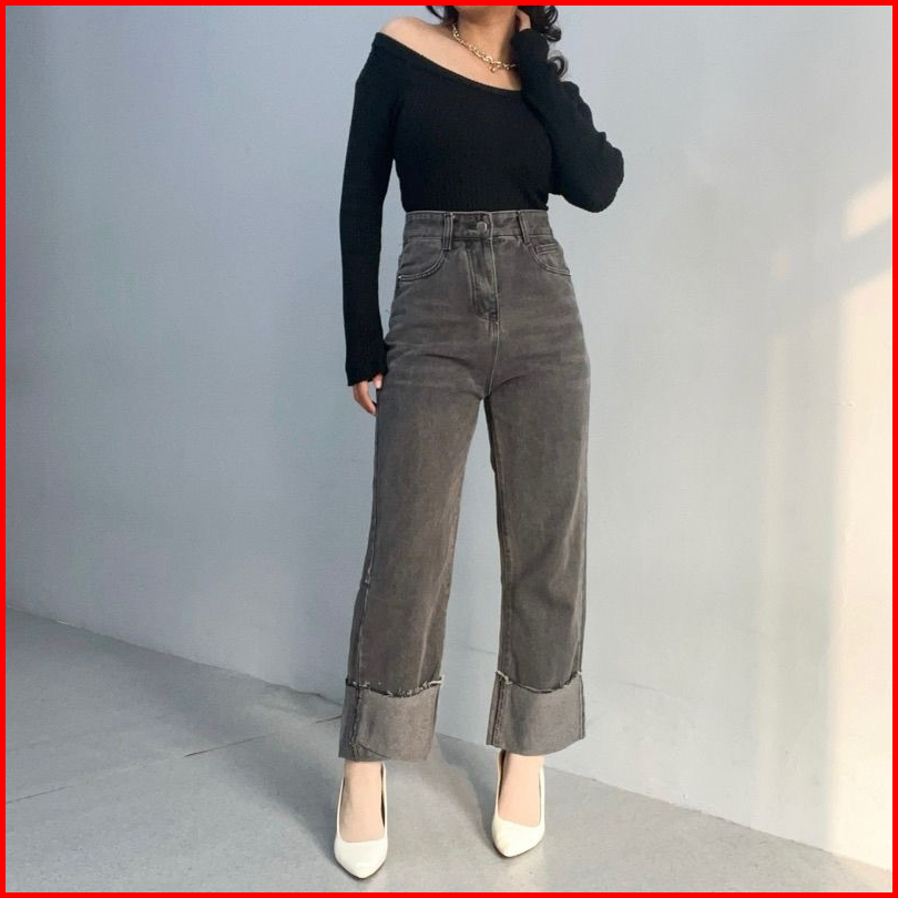 Rimay Celana Jeans Loose E21 Highwaist Wanita Kulot Lipat Celana Luxe Dlabel