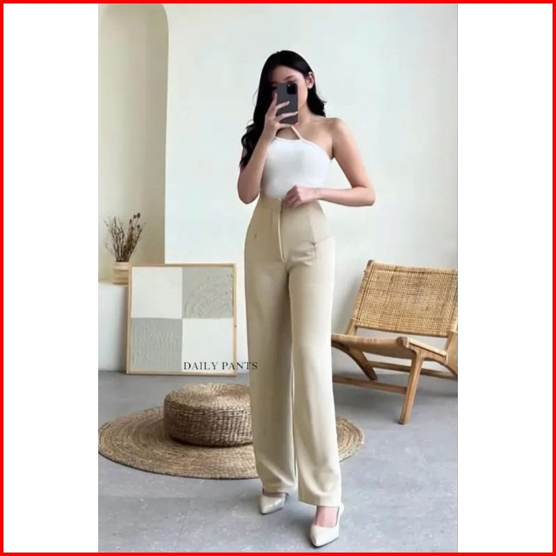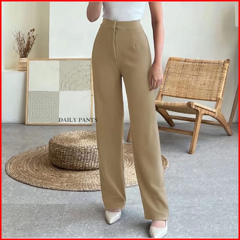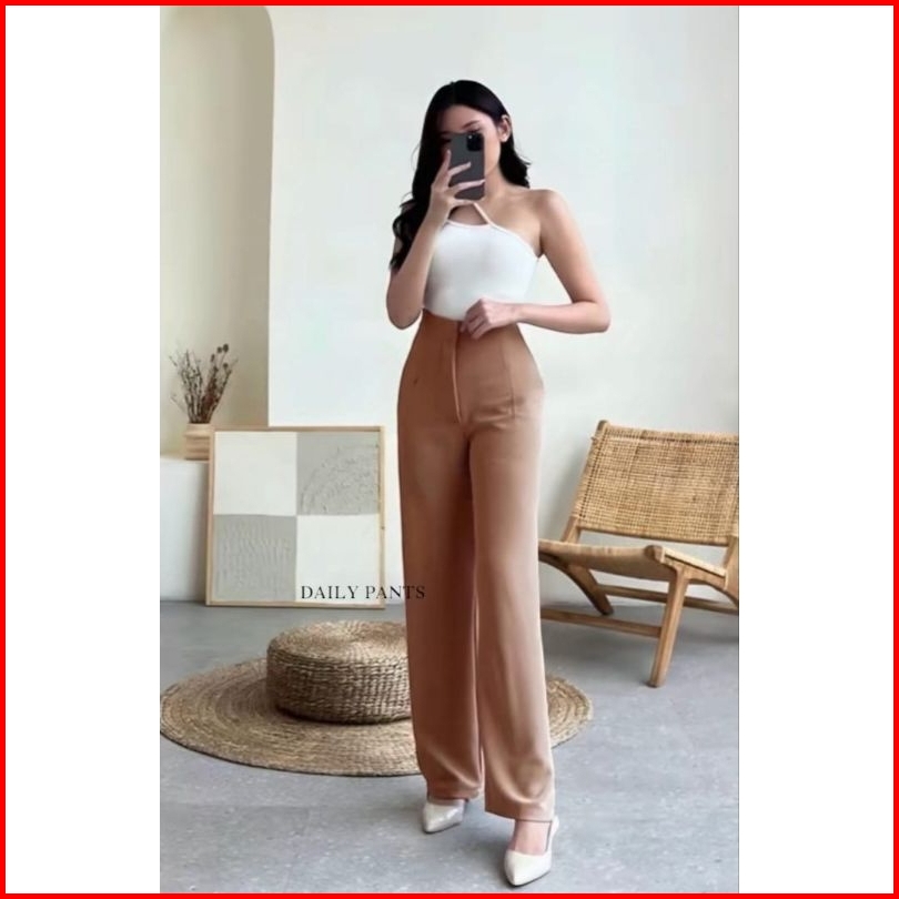 Cozie Pants Rib Knit Premium Highwaist Kulot Loose Pants Celana Wanita Anti Kusut