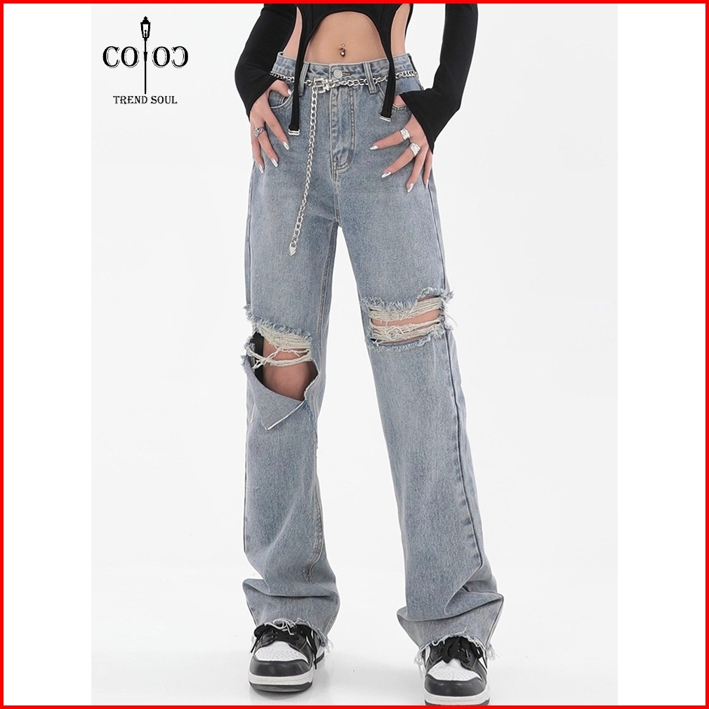 Coco Trend Soul Jeans -- Biru Kulot Highwaist Jeans Wanita Korean Style Terbaru
