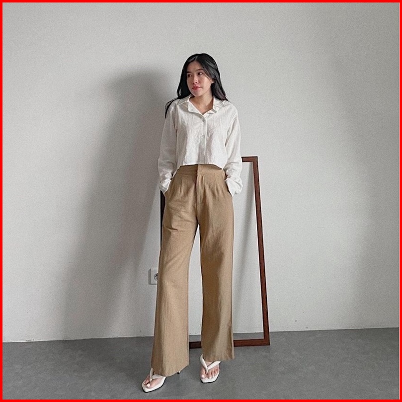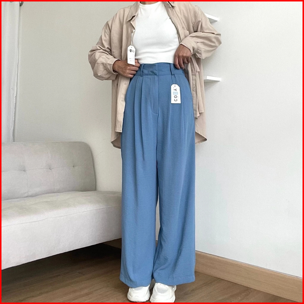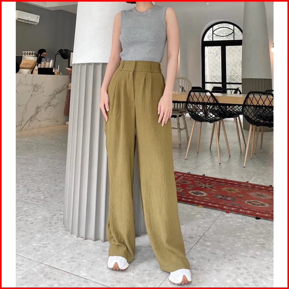Celana Kulot Crincle Kantor Crinkle Highwaist Wanita Loose Cullote Pants Terkini