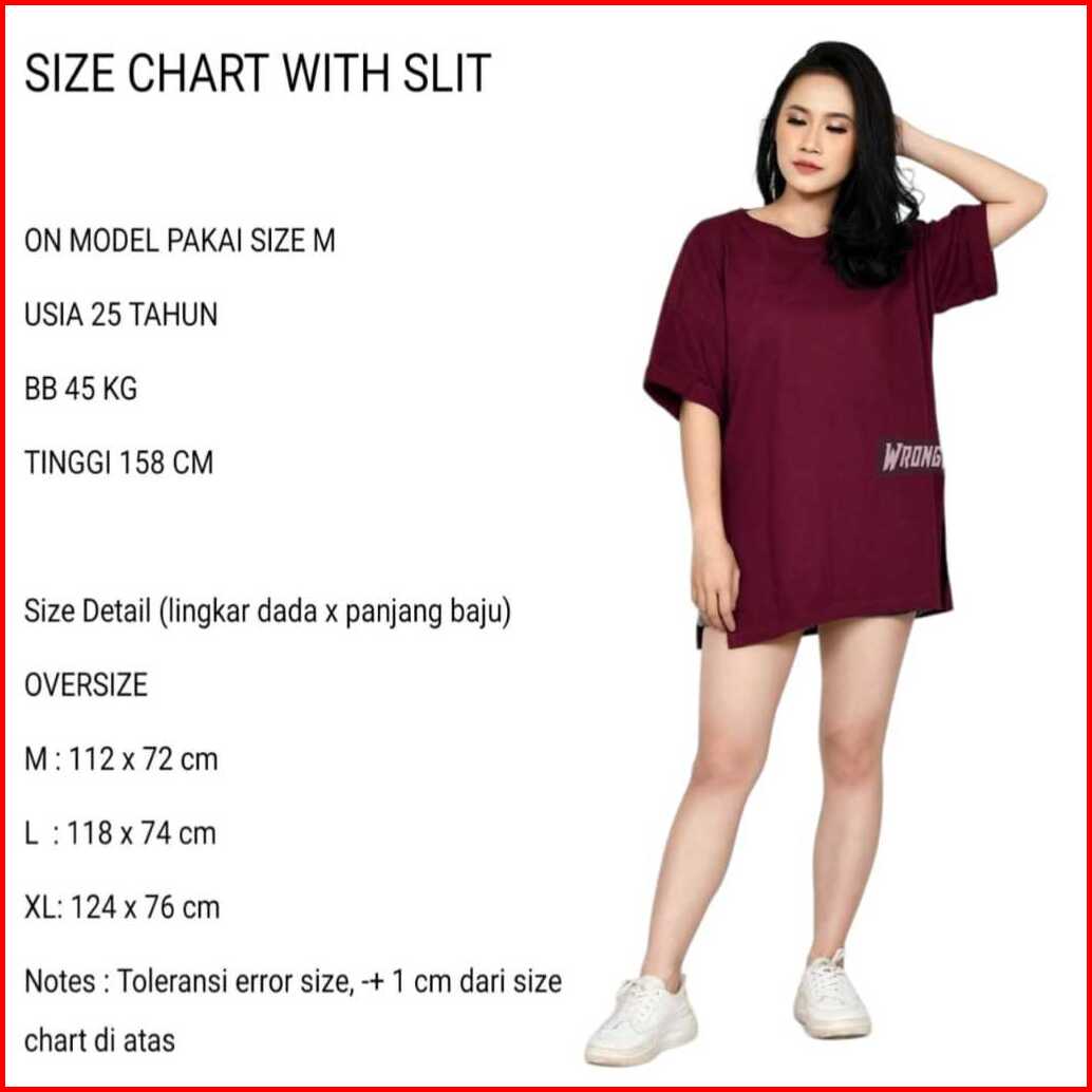 Kaos Over Size Wanita Belah Samping Lengan Stik Bahan Cotton Combed 24s Warna Merah