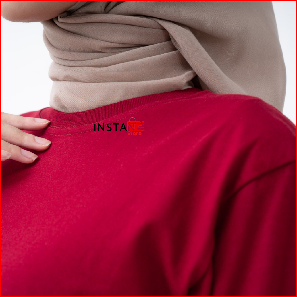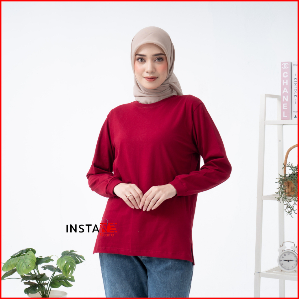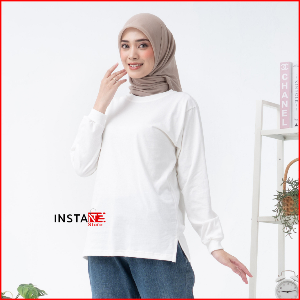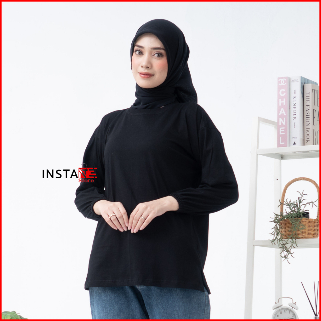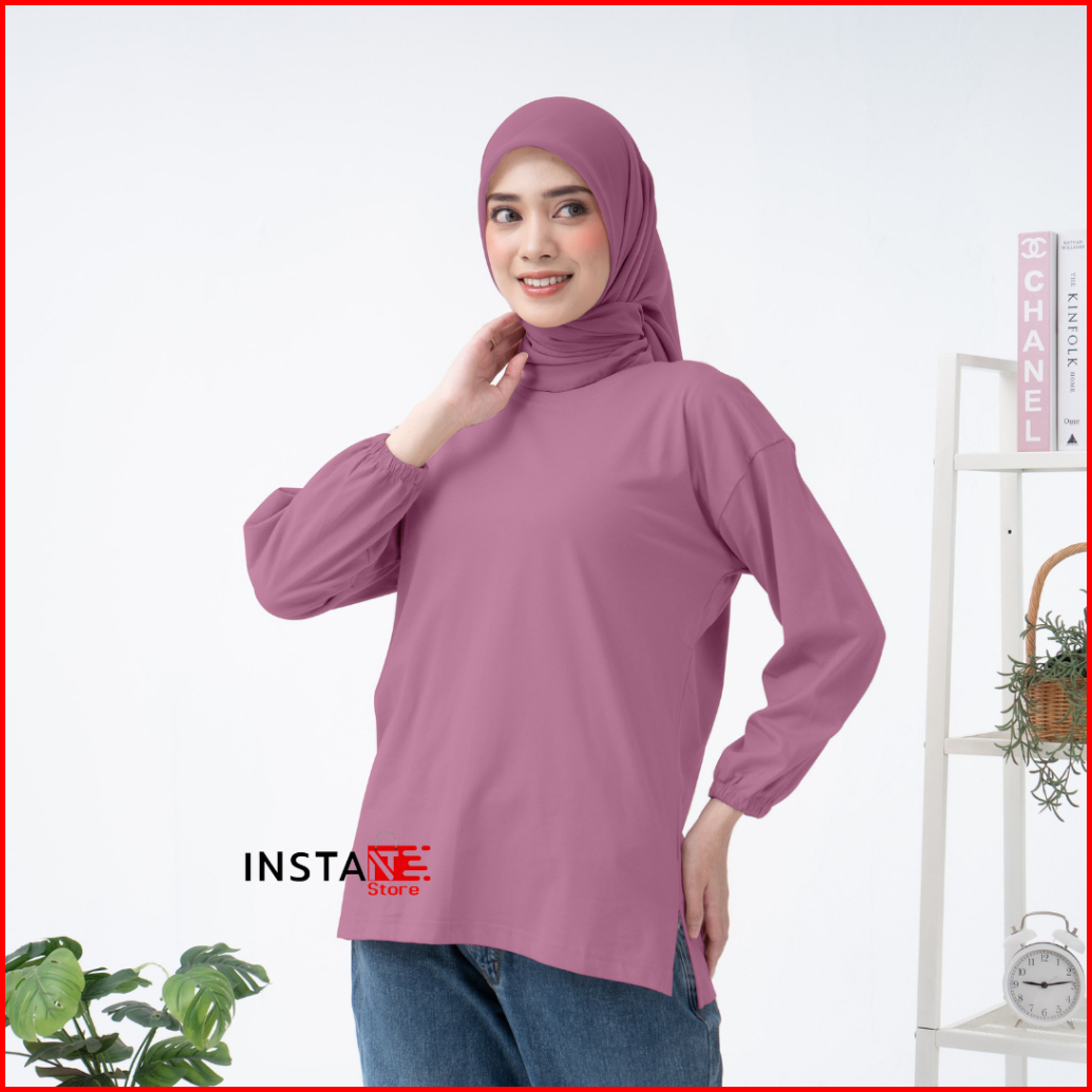 Atasan Baju Kaos Blouse Perempuan Muslim Polos Oversize Viral Lengan Panjang Kerut Katun Combed 24s
