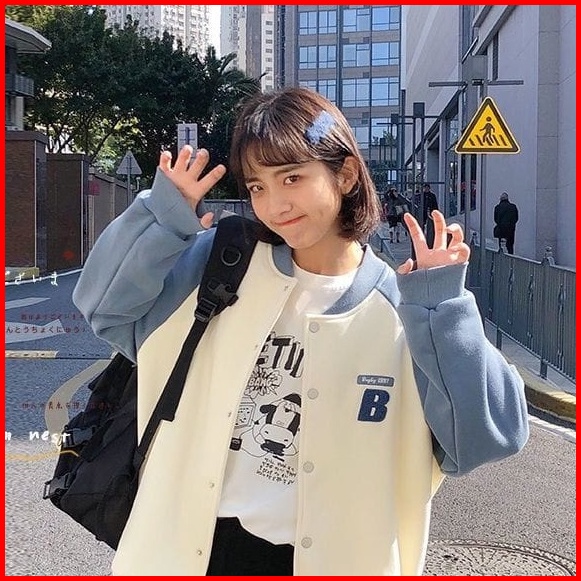 Sweater Wanita B Rugby Basebal Jacket Wanita Jaket Varsity Wanita Oversize Jacket Korean Style