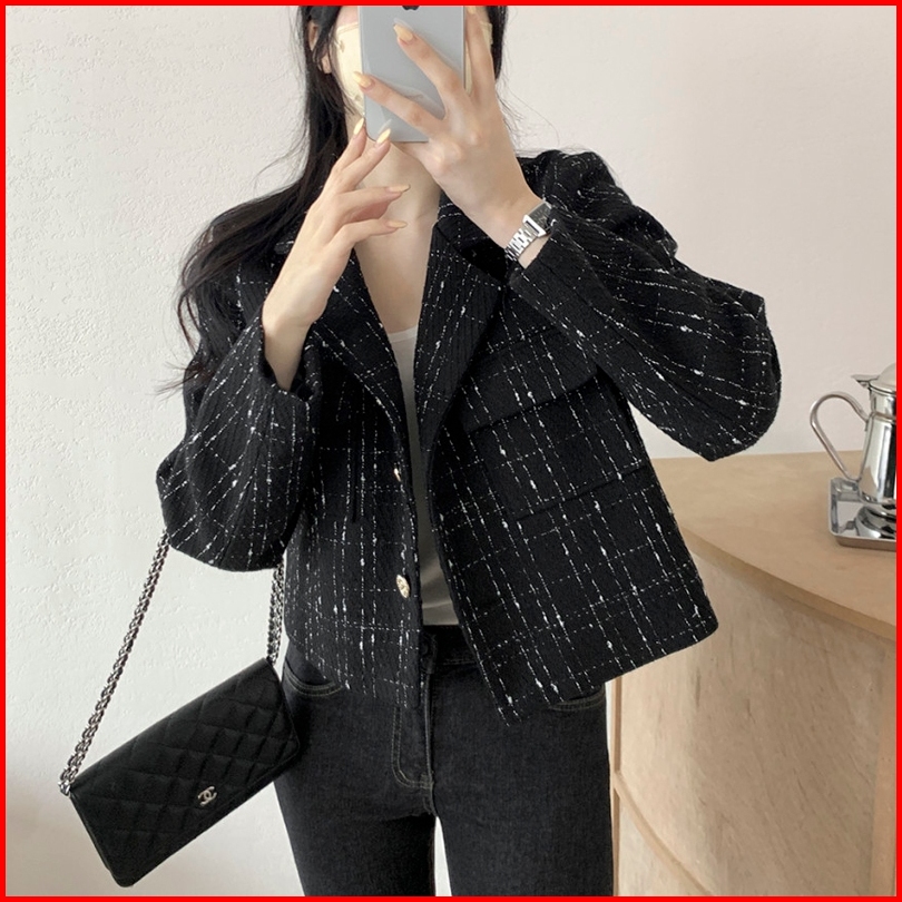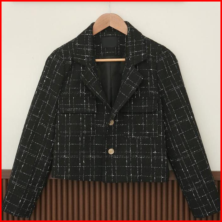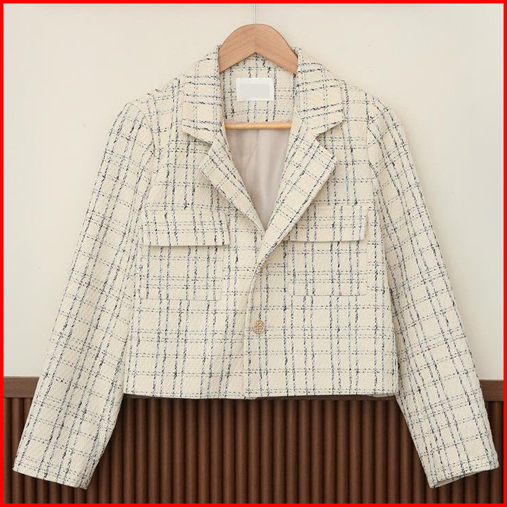 Po Floret Jaket Kotak-kotak Gaya Korea Cardigan Pendek Modis Serbaguna Untuk Wanita