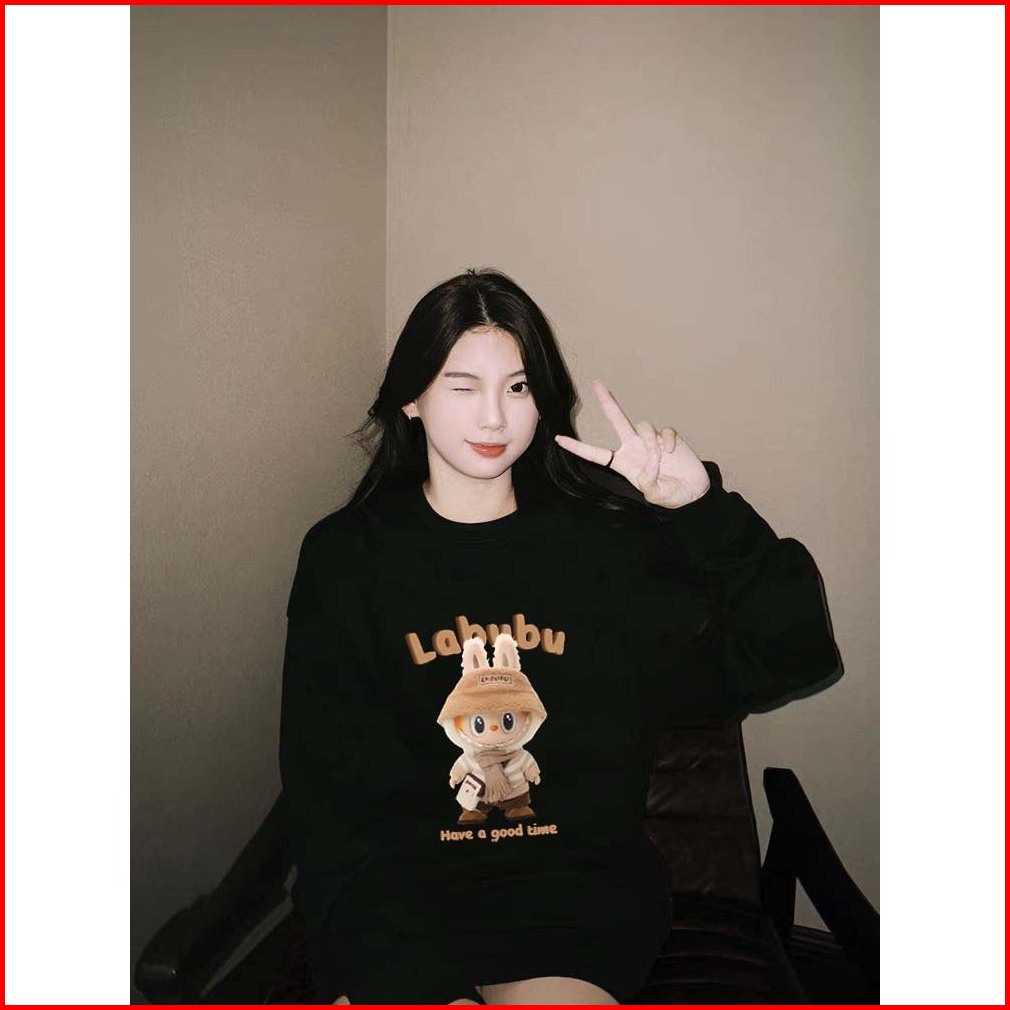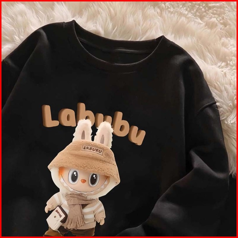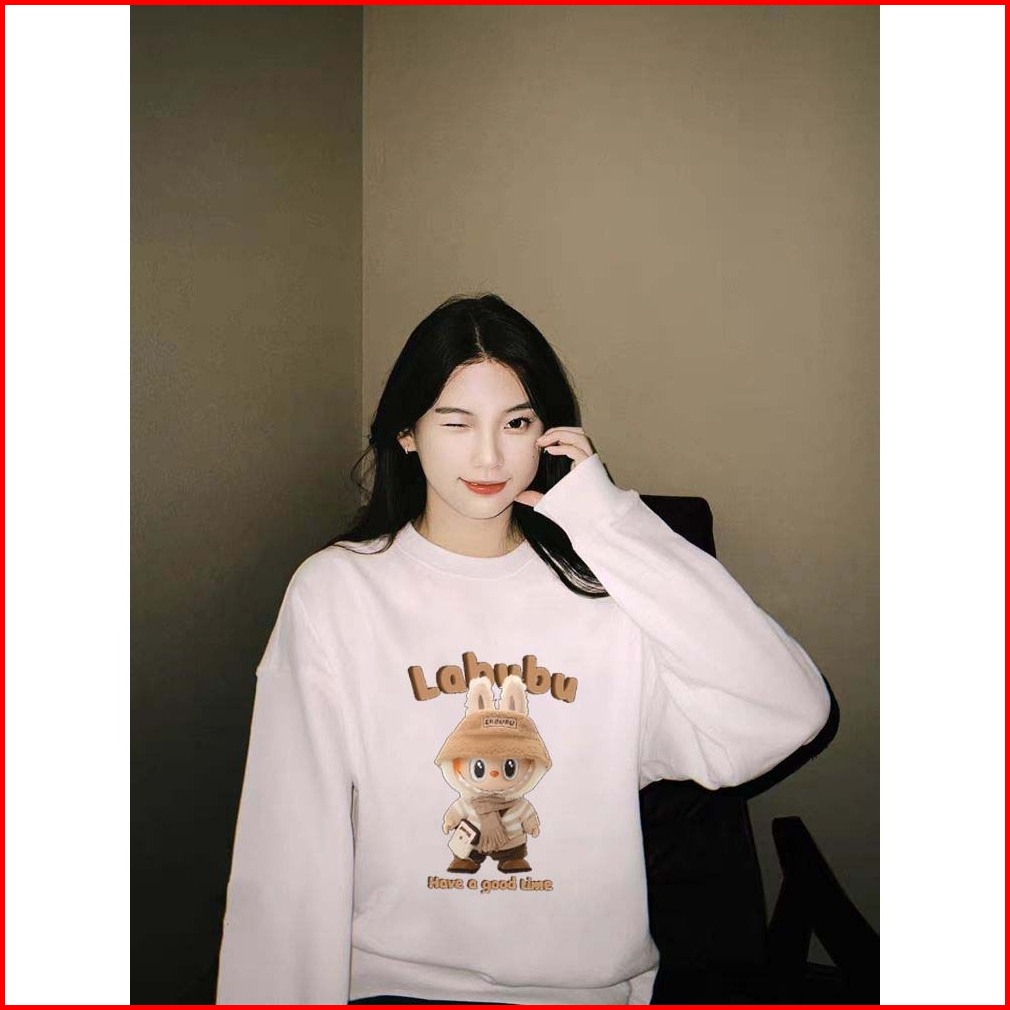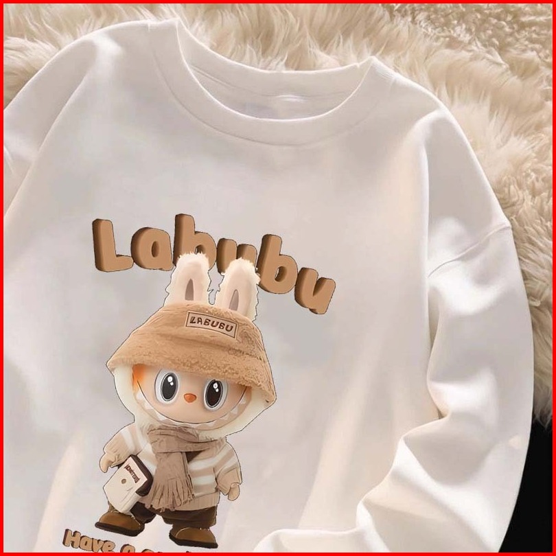 Pola Kartun Labubu Yang Lucu Sweater Oversize Wanita Korean Sweater Wanita 100 Cotton Sweater Putih