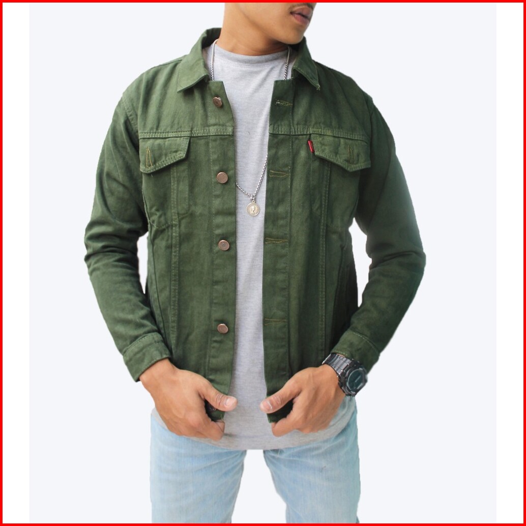 Jaket Jeans Oversize Jaket Jeans Pria Jaket Denim Jaket Jeans Hijau Army