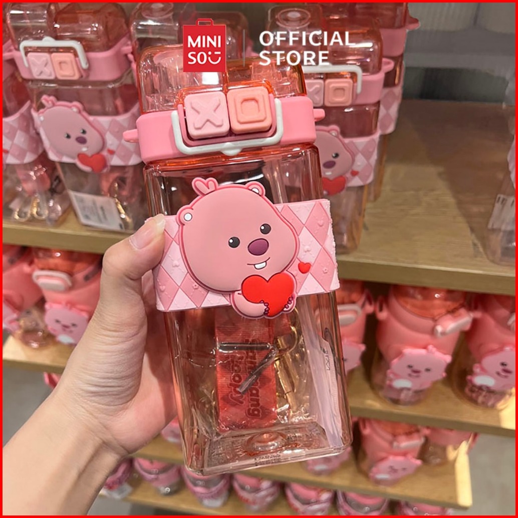 Miniso X Zanmang Loopy Collection Botol Plastik Dengan Tali Bahu Cerat Ganda Plastic Bottle With Shoulder Strap 560ml