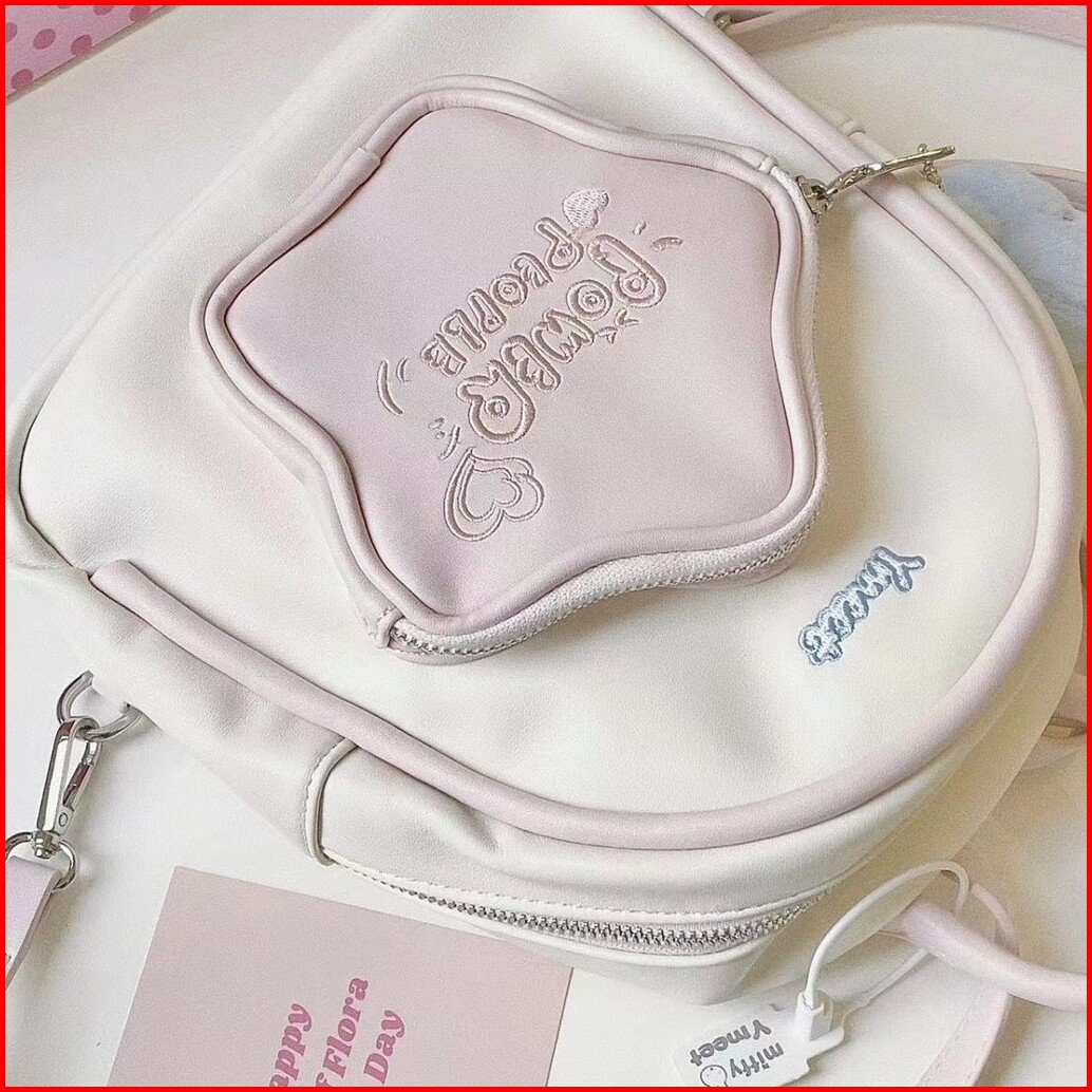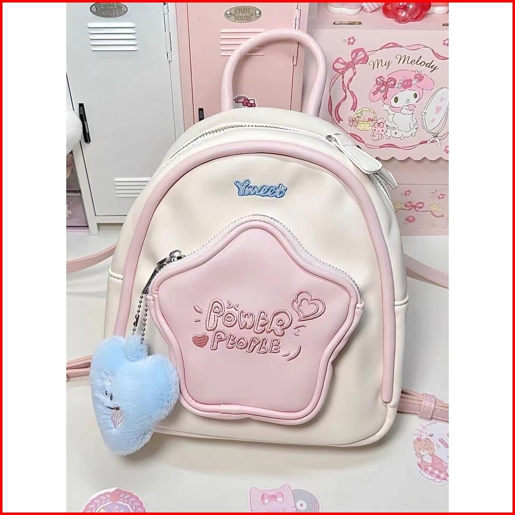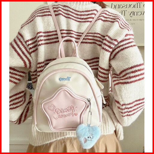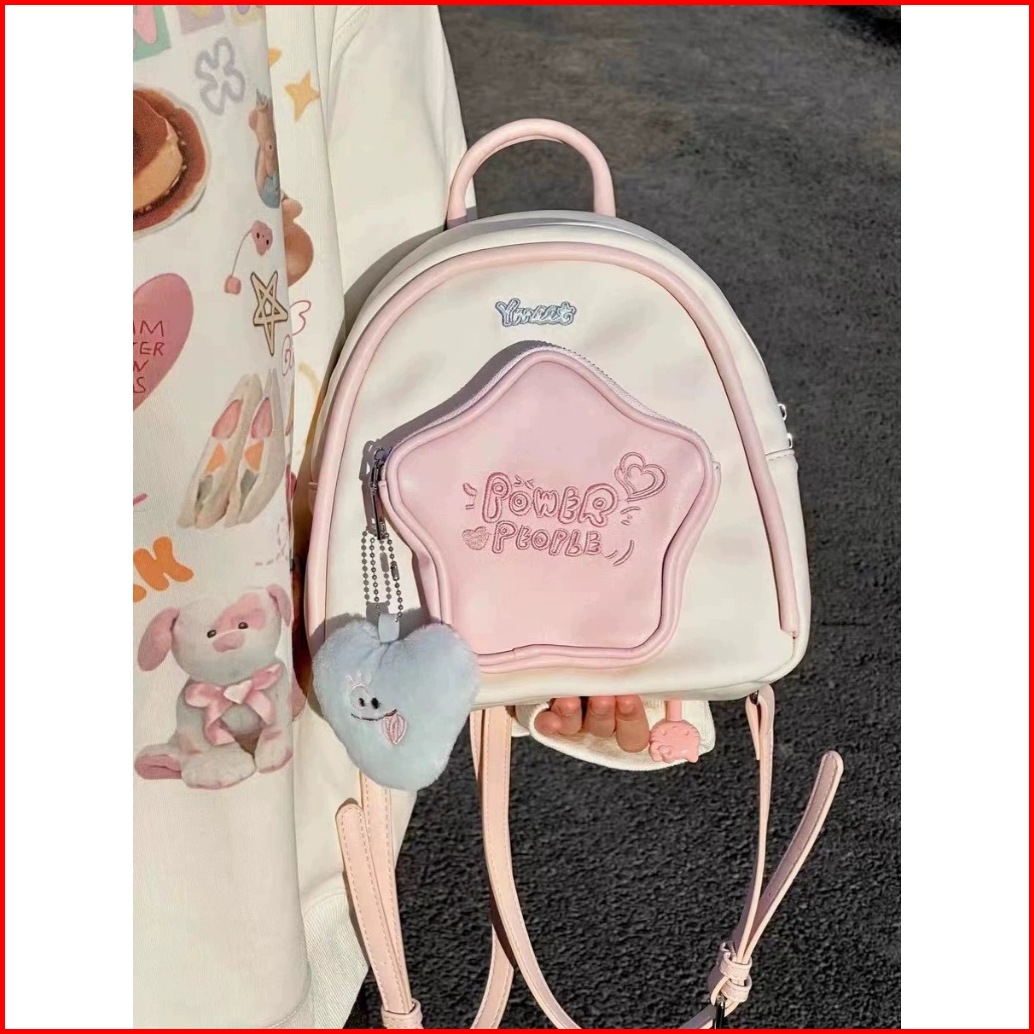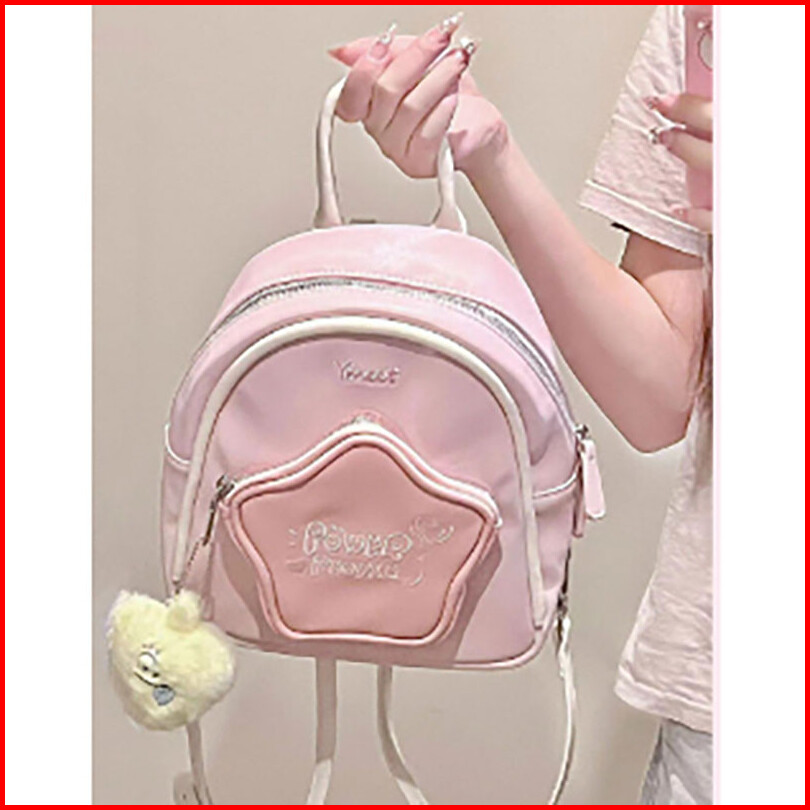 Tas Ransel Lucu Bahan Pu Bintang Pink White Tas Sekolah Ransel Kecil Mini Kulit Tas Ransel Pink Soft Backpack Fashion Ko