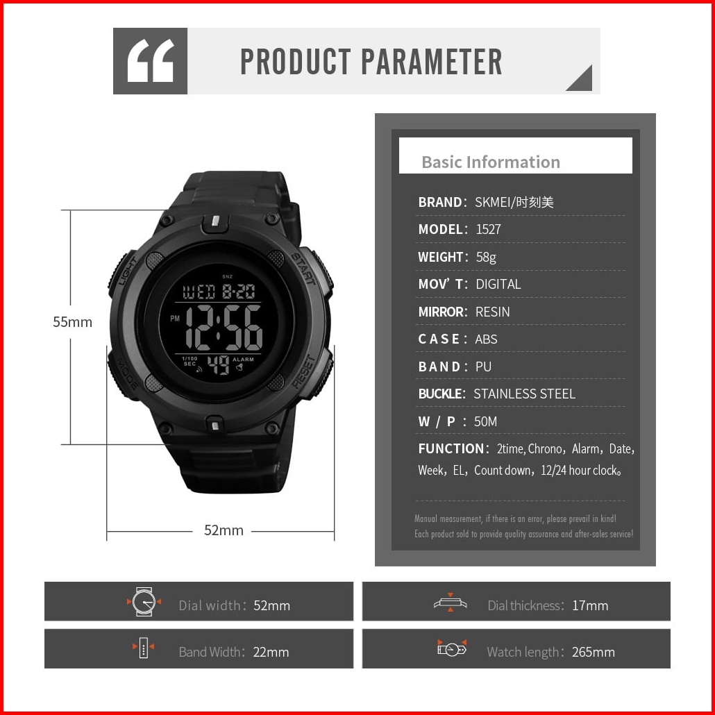 Jam Tangan Pria Digital Skmei 1527 Black Water Resistant 50m