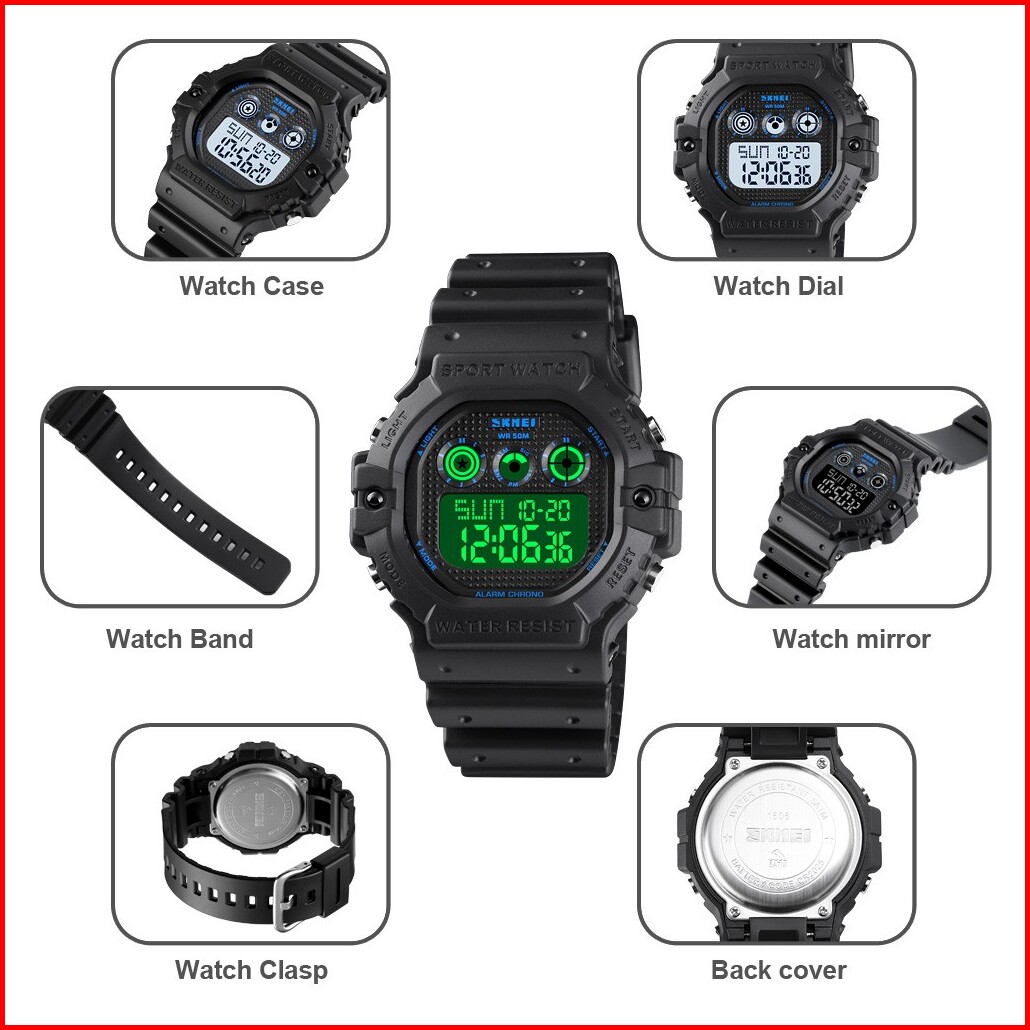 Jam Tangan Pria Digital Skmei 1606 Black Water Resistant 50m