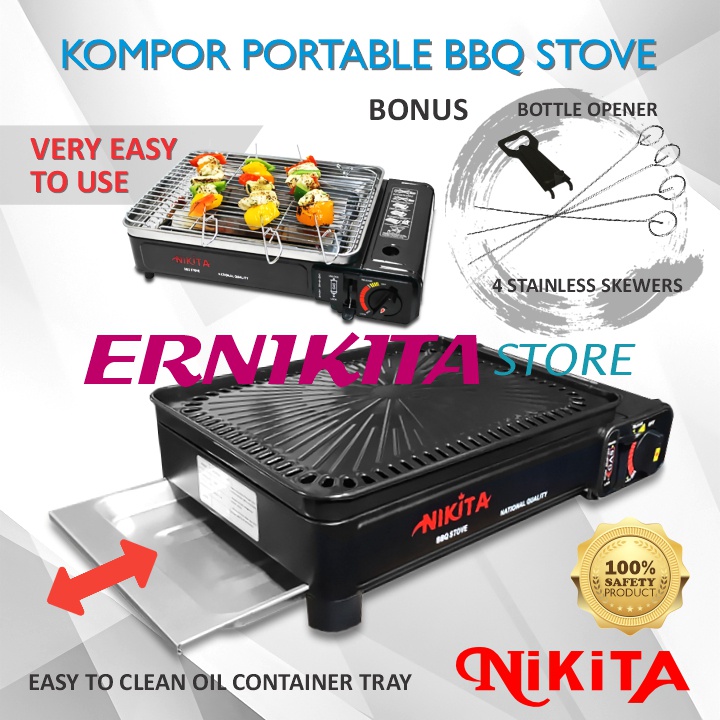 Kompor Portable Bbq 2 In 1 Grill Dan Tray Panggangan Barbeque Bonus Tusukan Sate