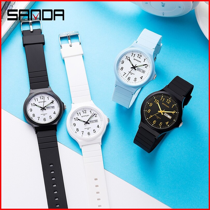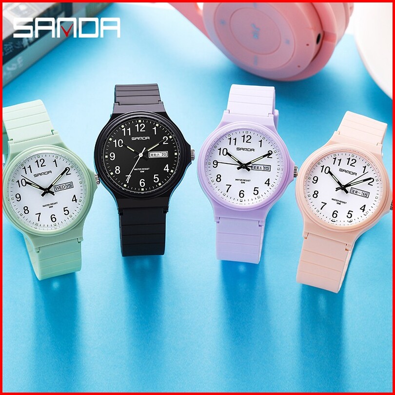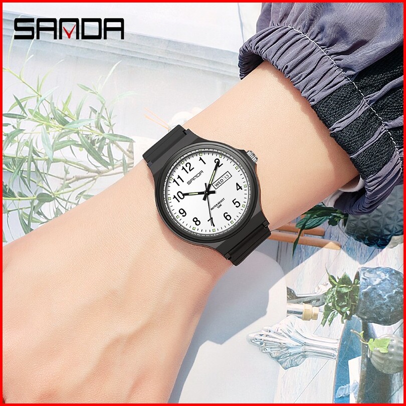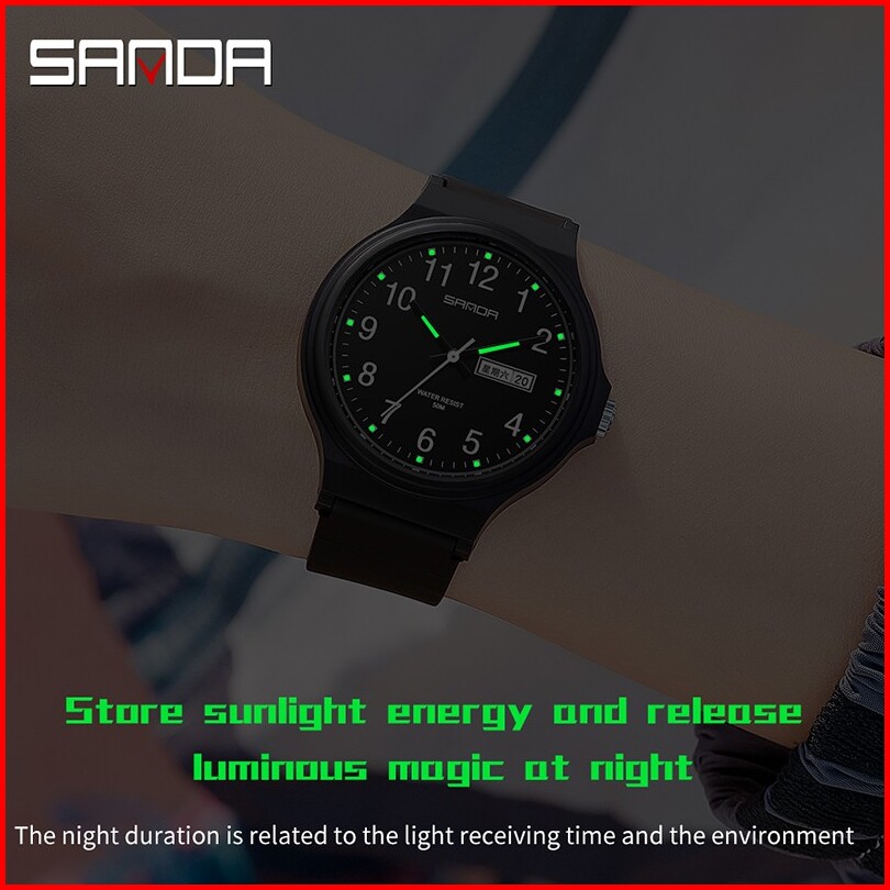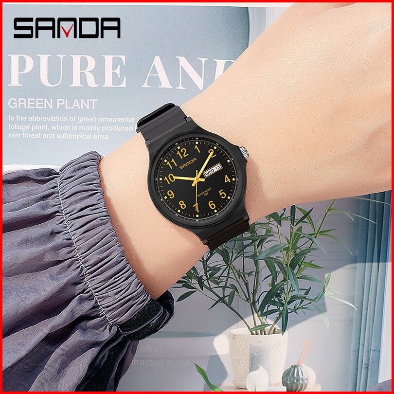 Sanda 6060 Jam Tangan Wanita Pria Analog Sport Tali Rubber Luminous Currenos