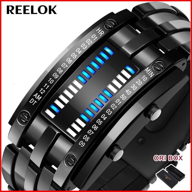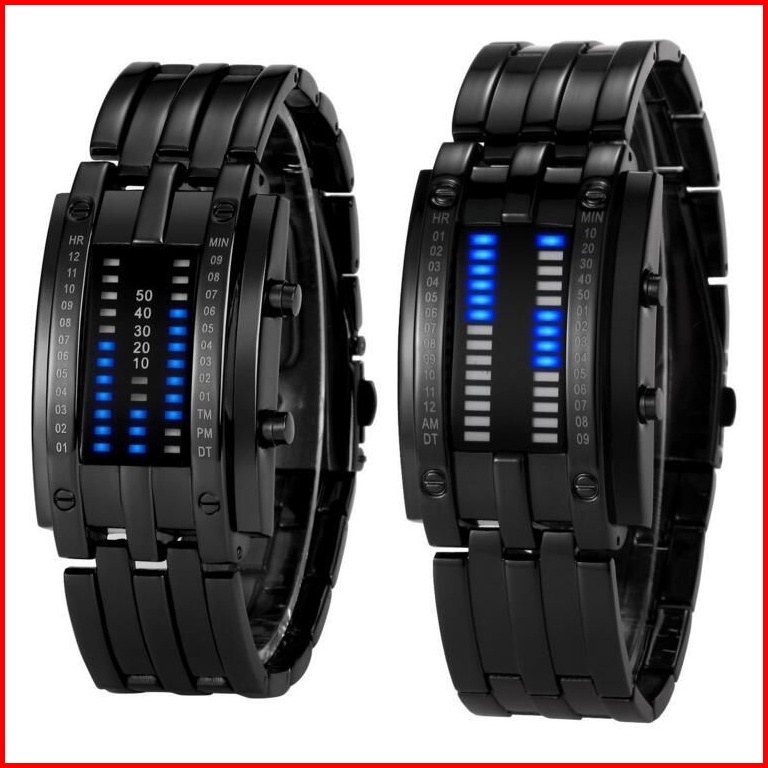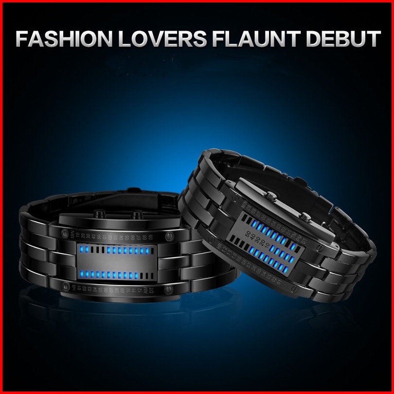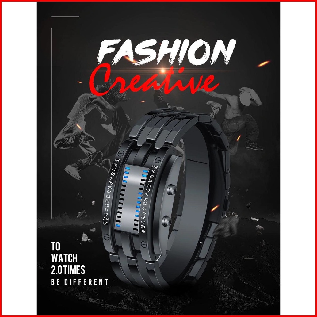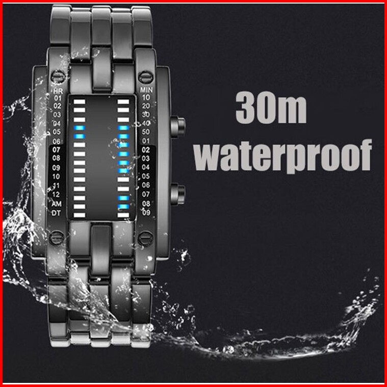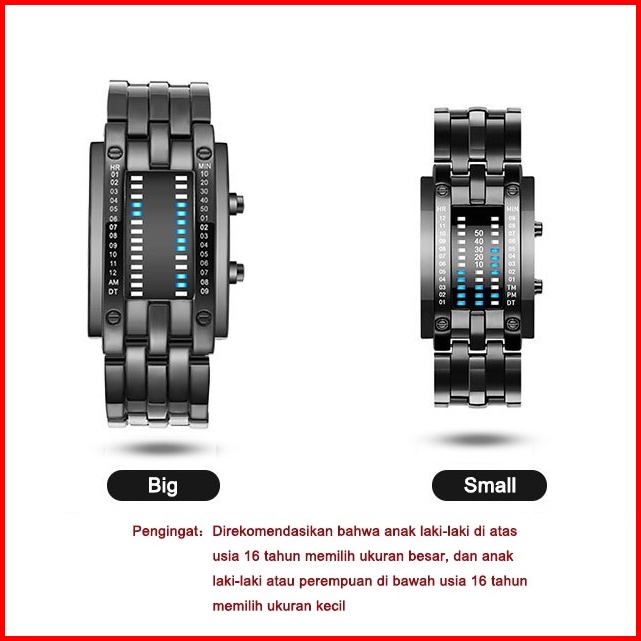 Fngeen Jam Tangan Pria Digital Biner Led Ironman Fashion Keren Digital Bercahaya Stainless Steel Original Anti Air Watch