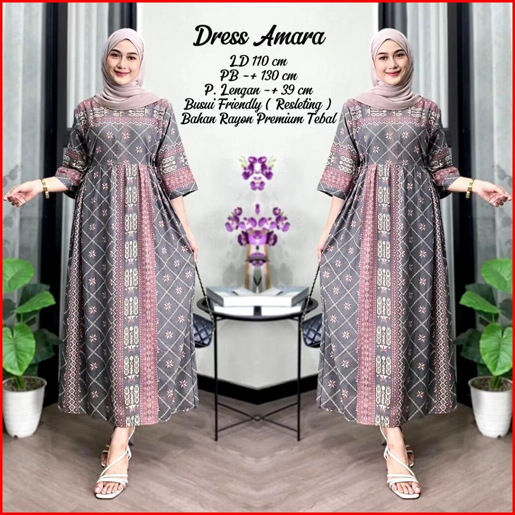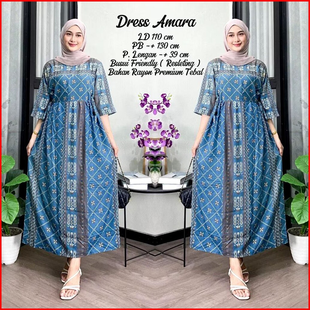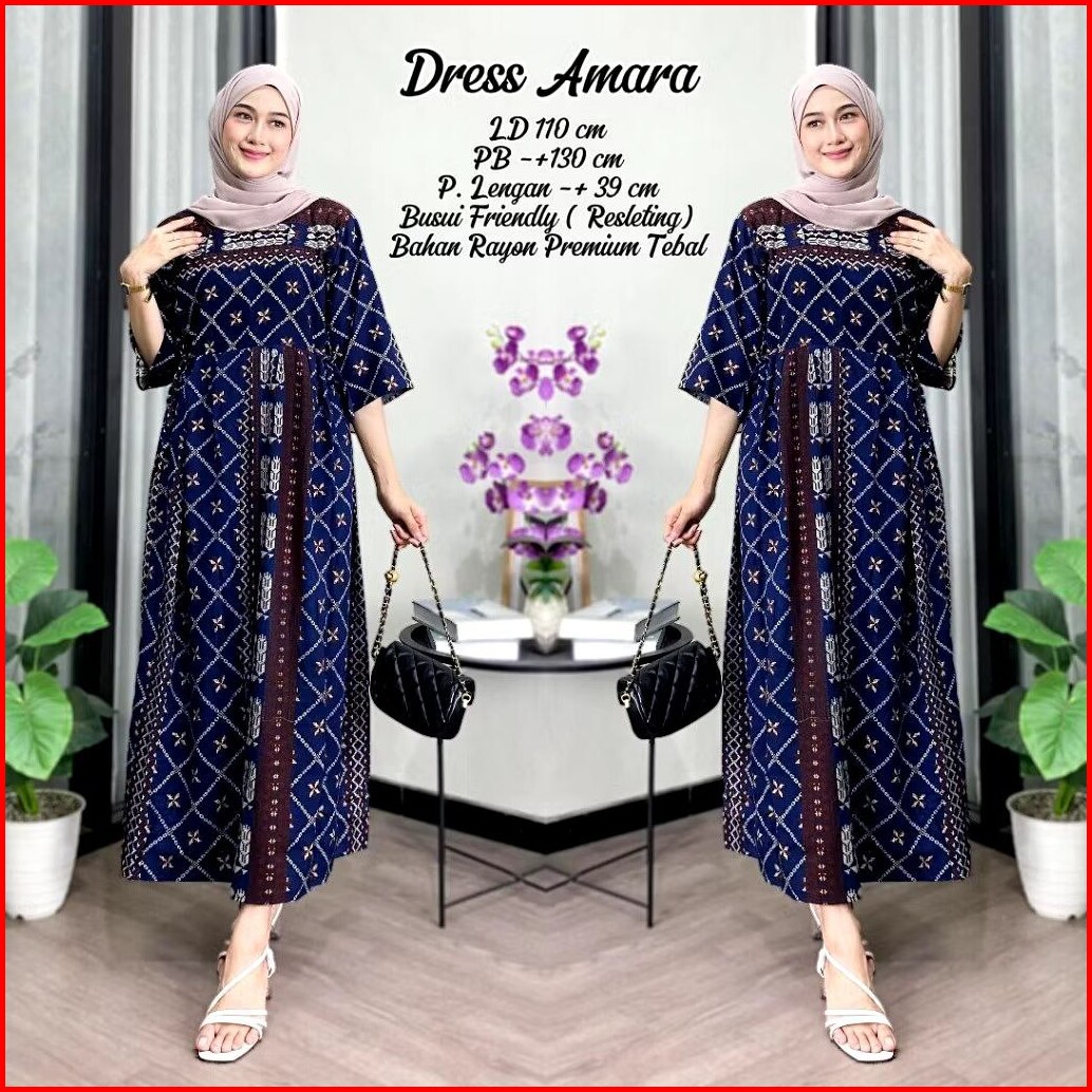 Daster Motif Amara Kekinian Lengan 3 4 Pb 130 Cm Busui Friendly