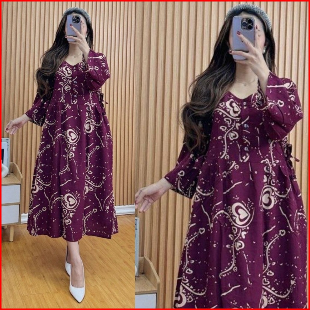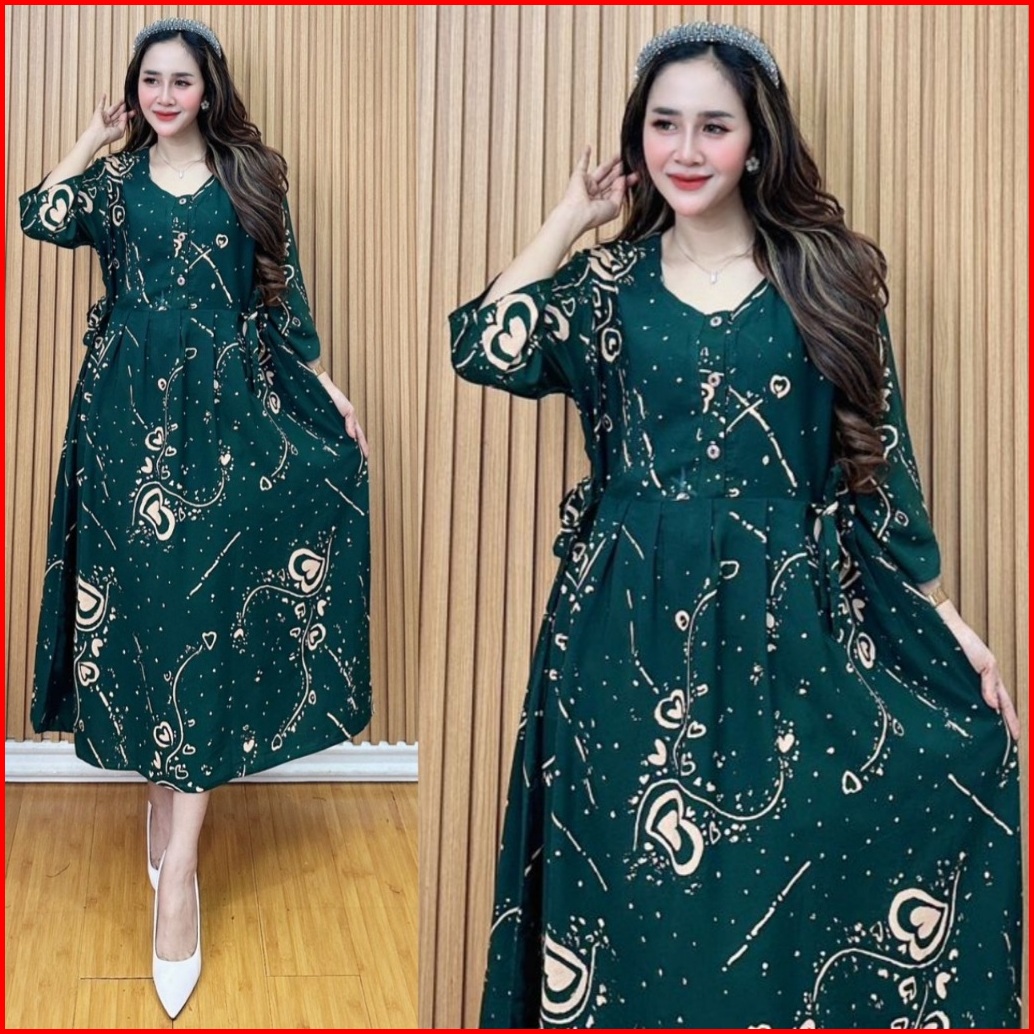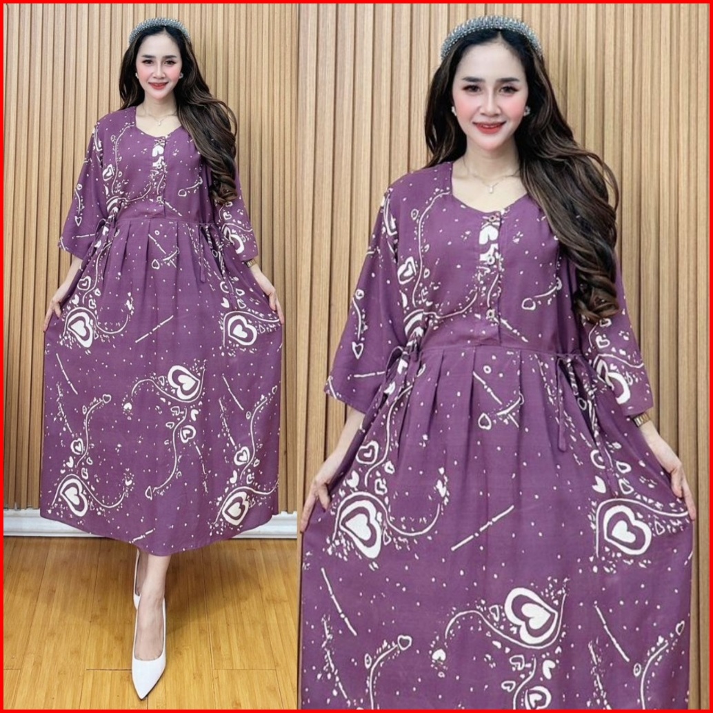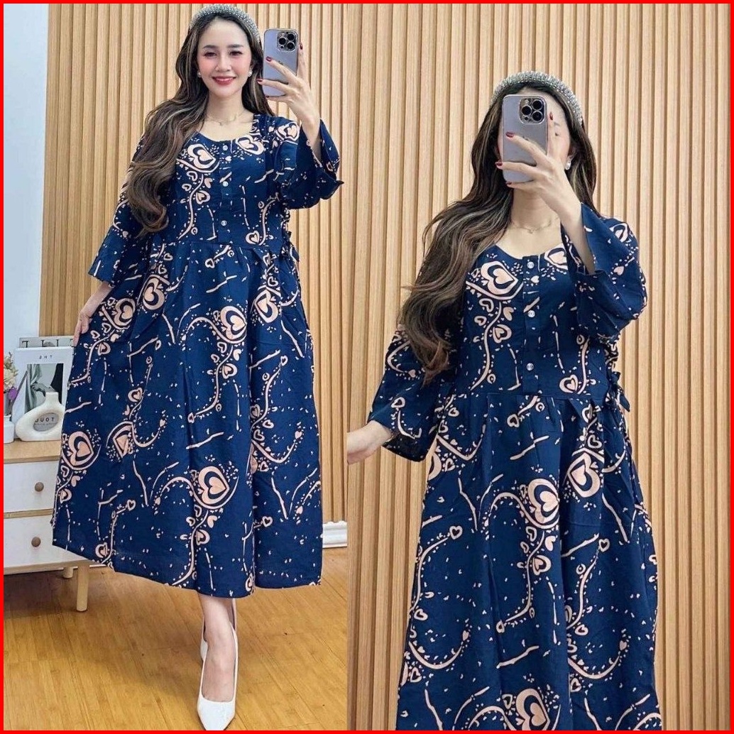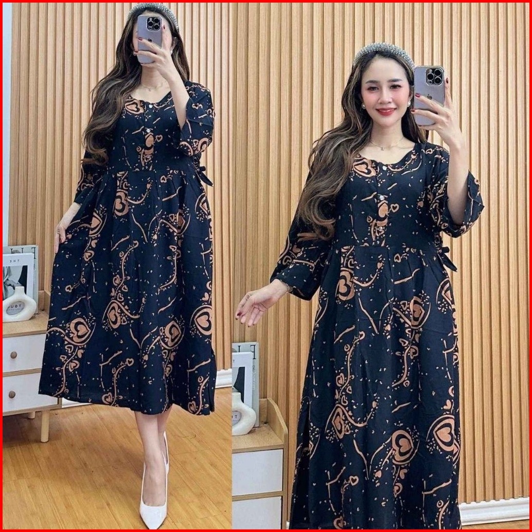 Dress Kancing Jumbo Ld 120 Motif Terbaru Bahan Rayon Tebal Nyaman Di Pakai Sehari-hari