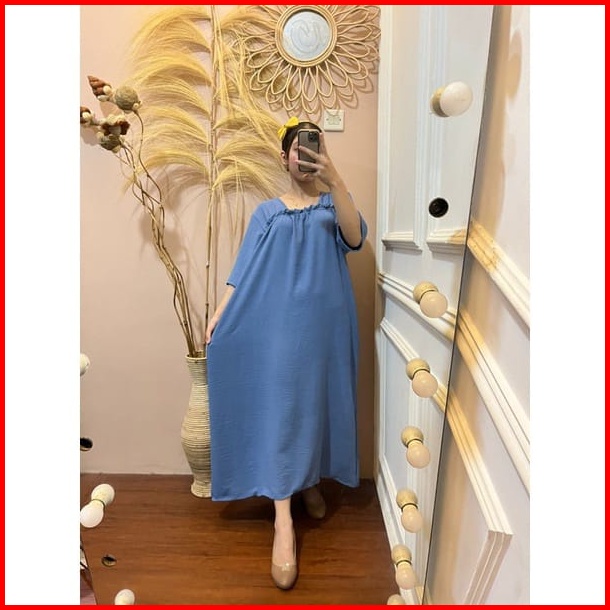 Shena Dress Daster Zara Crinkle Airflow Daster Kerut Dada Jumbo