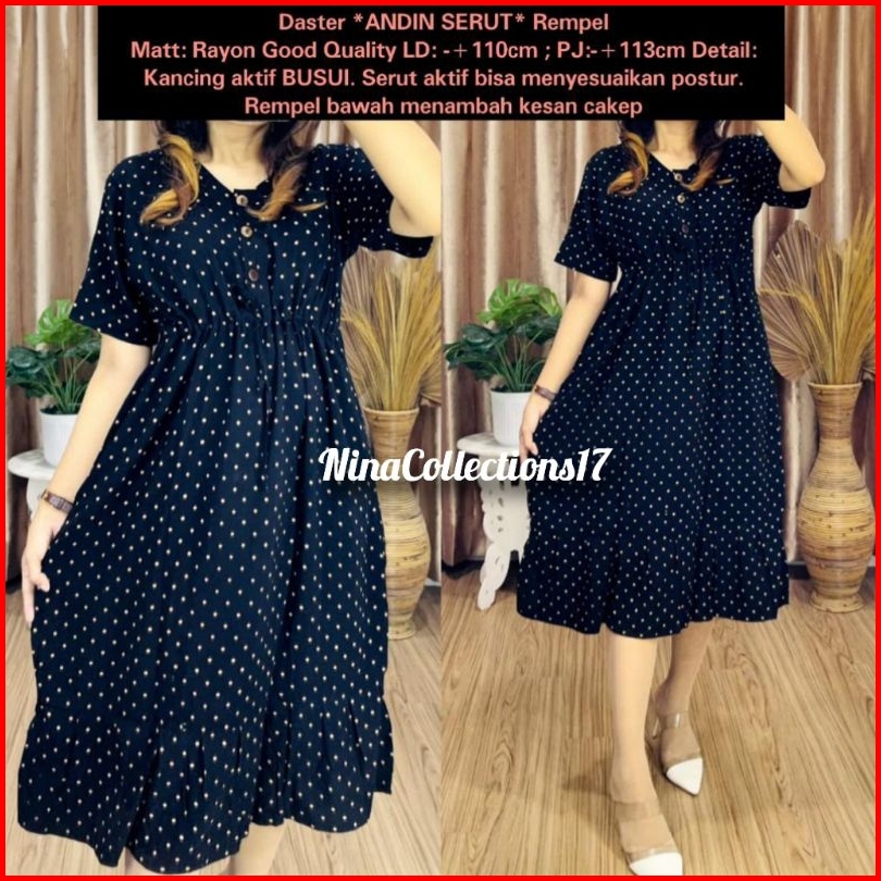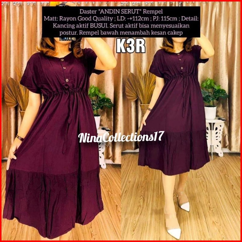 Daster Dress Serut Polos Rayon Adem Tebal Kancing Busui Daster Andin Serut Daster Busui Daster Rayon Premium Daster Rayo