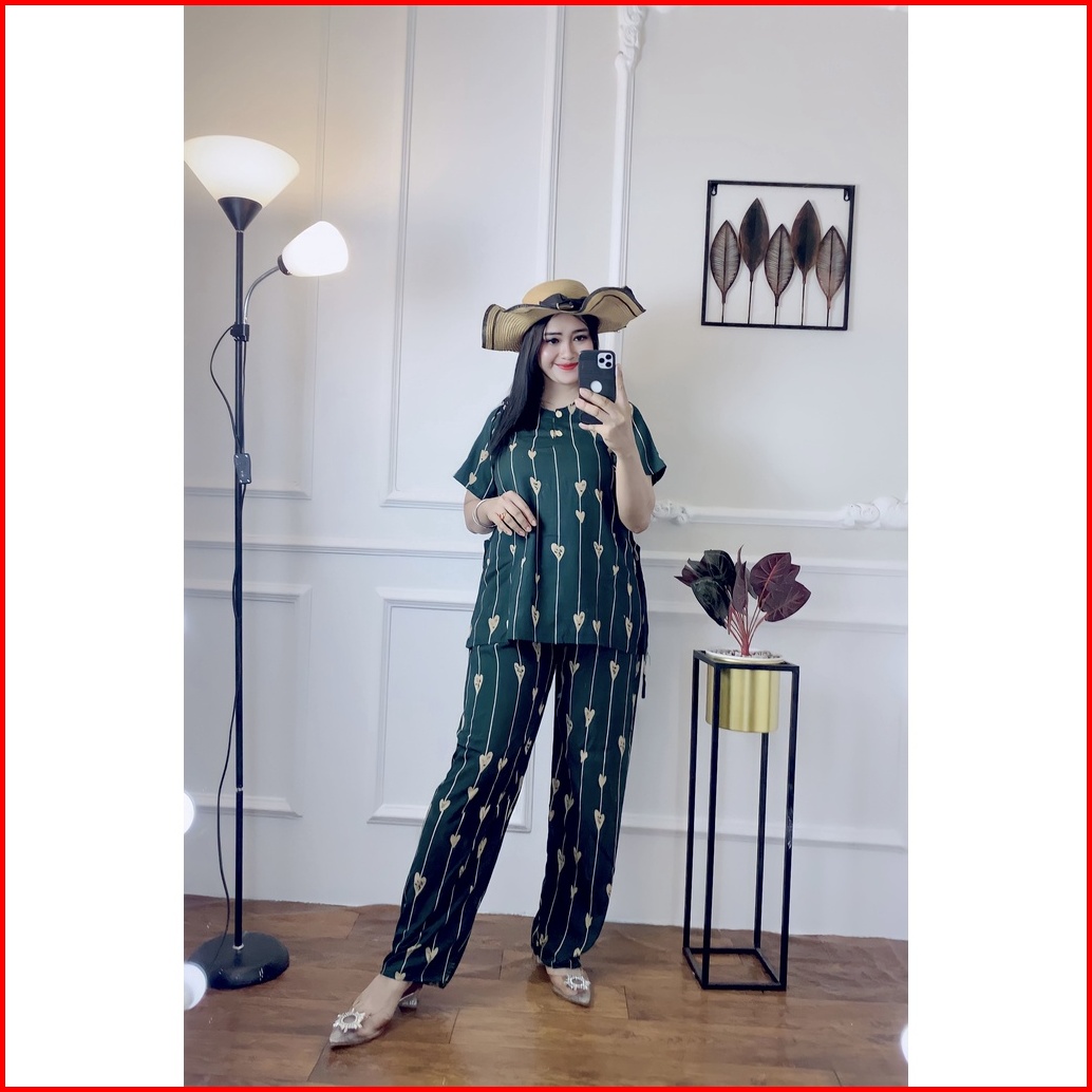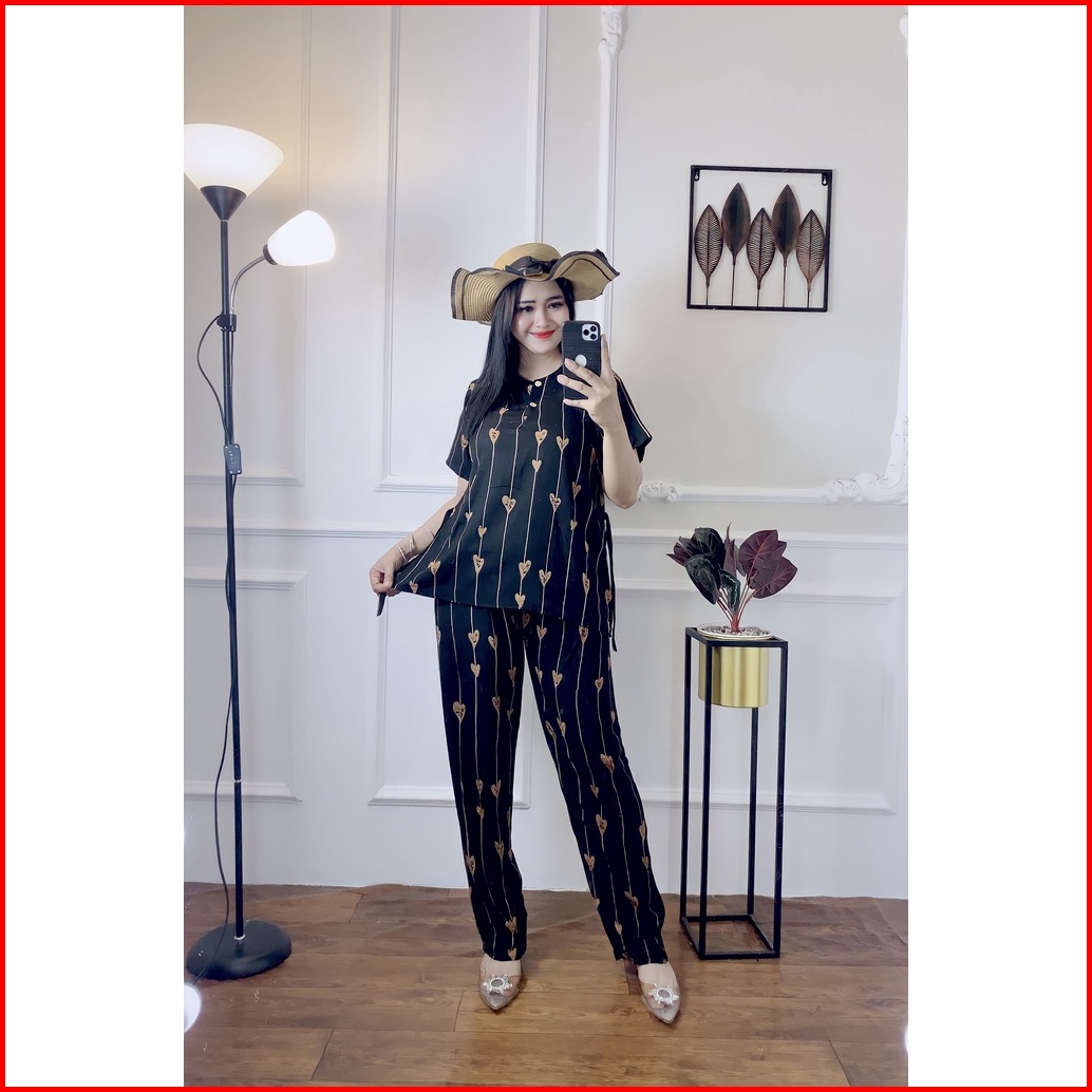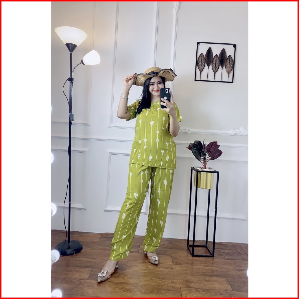 Setelan Cp Rayon Motif Love Oneset Rayon Size Standart Terlaris