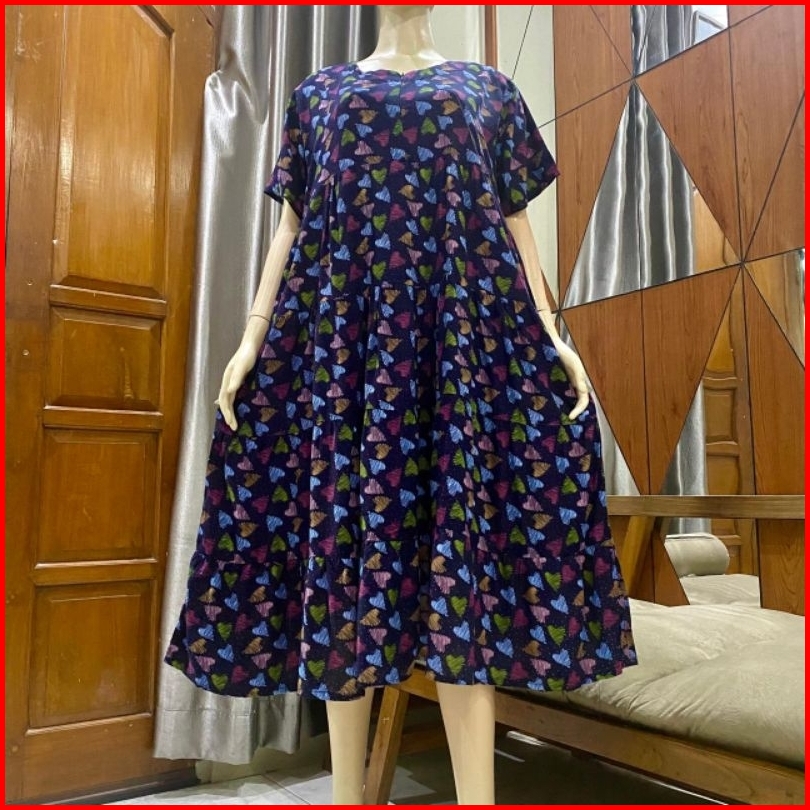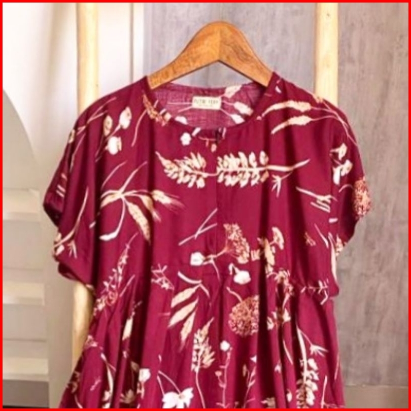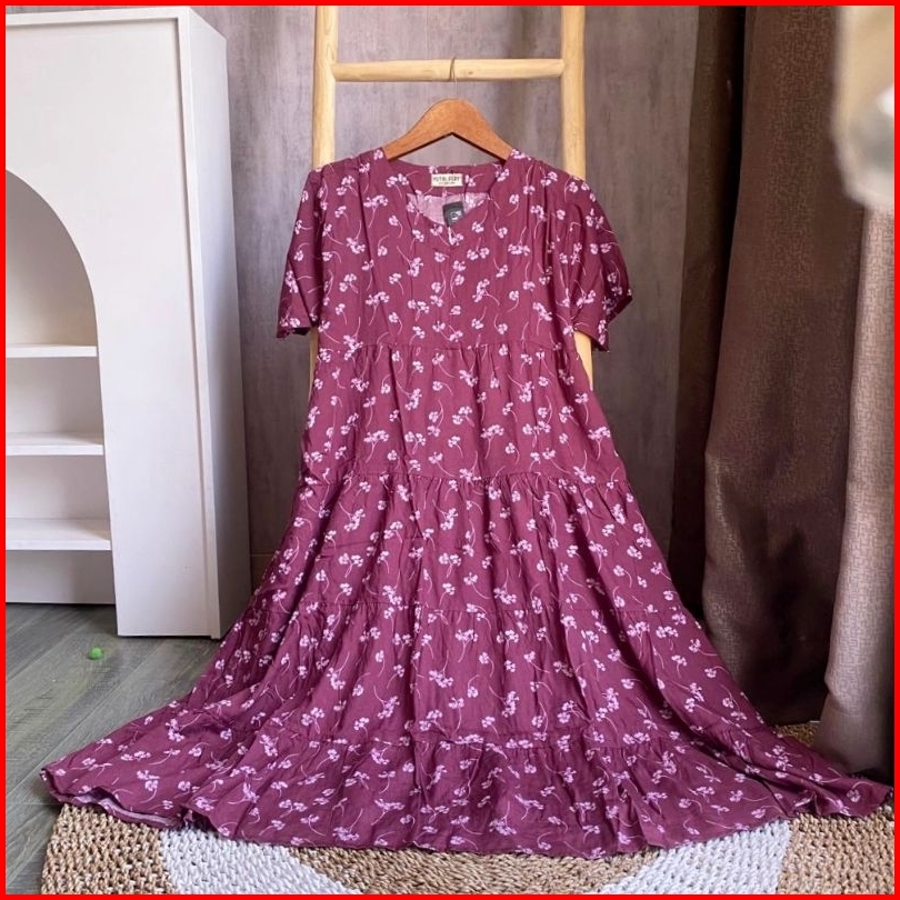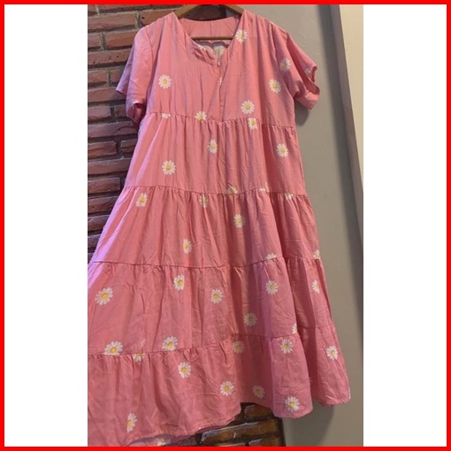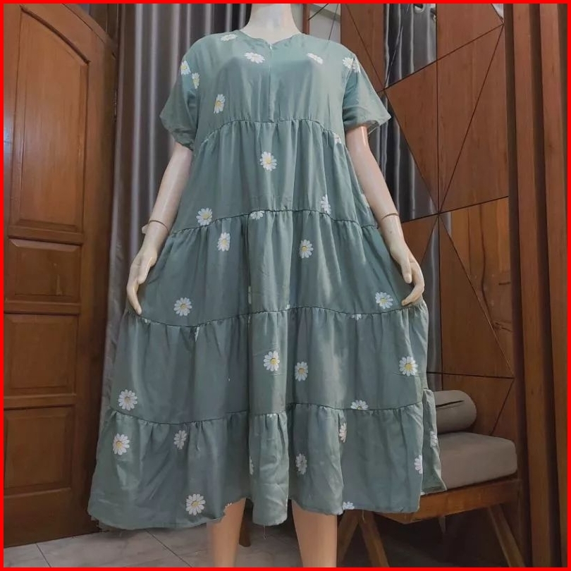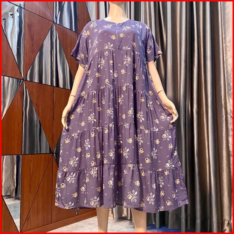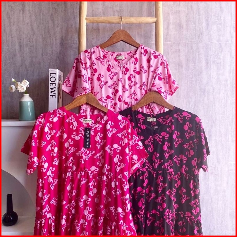 Dailywear Dress Susun Resleting Ruffle Motif Barbie Daisy Mapple Daster Pendek Rayon Bali Chic Lucu Premium