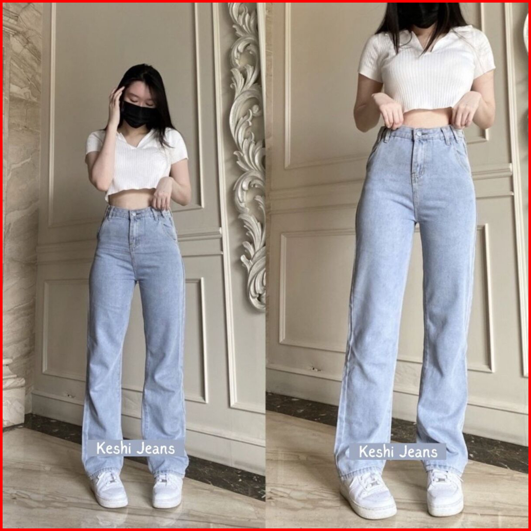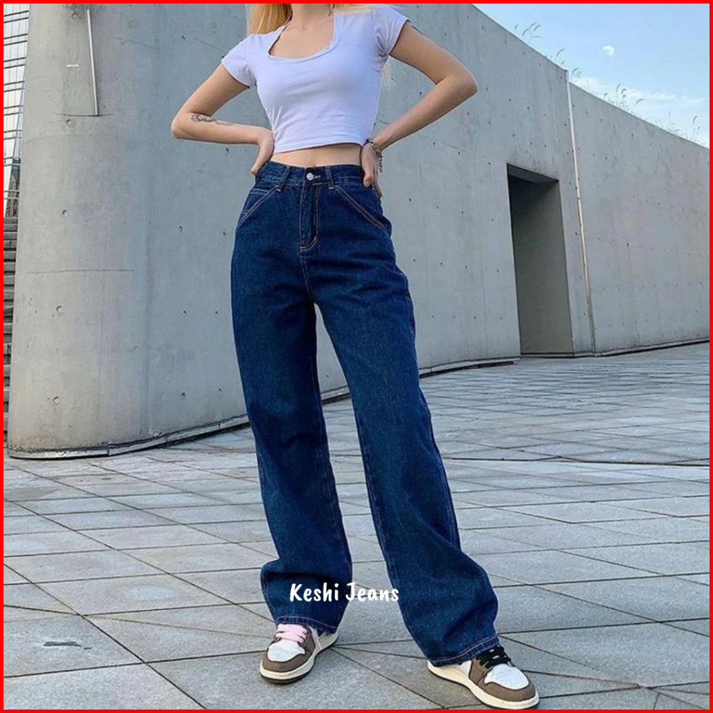 Highwaist Retro Jeans Basic Hw Loose Kulot Jeans Celana Panjang - Celana Highwaist Wanita Loose Premium Hangover