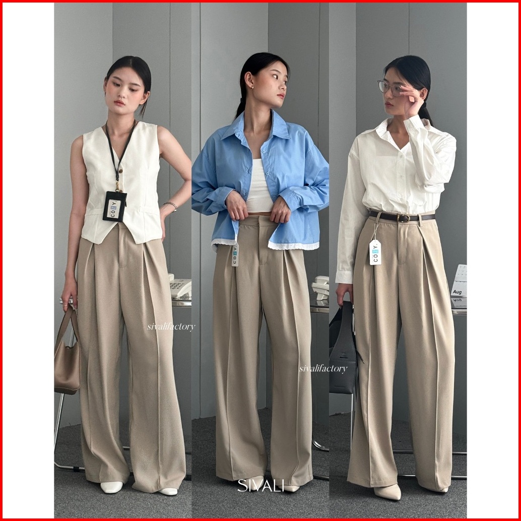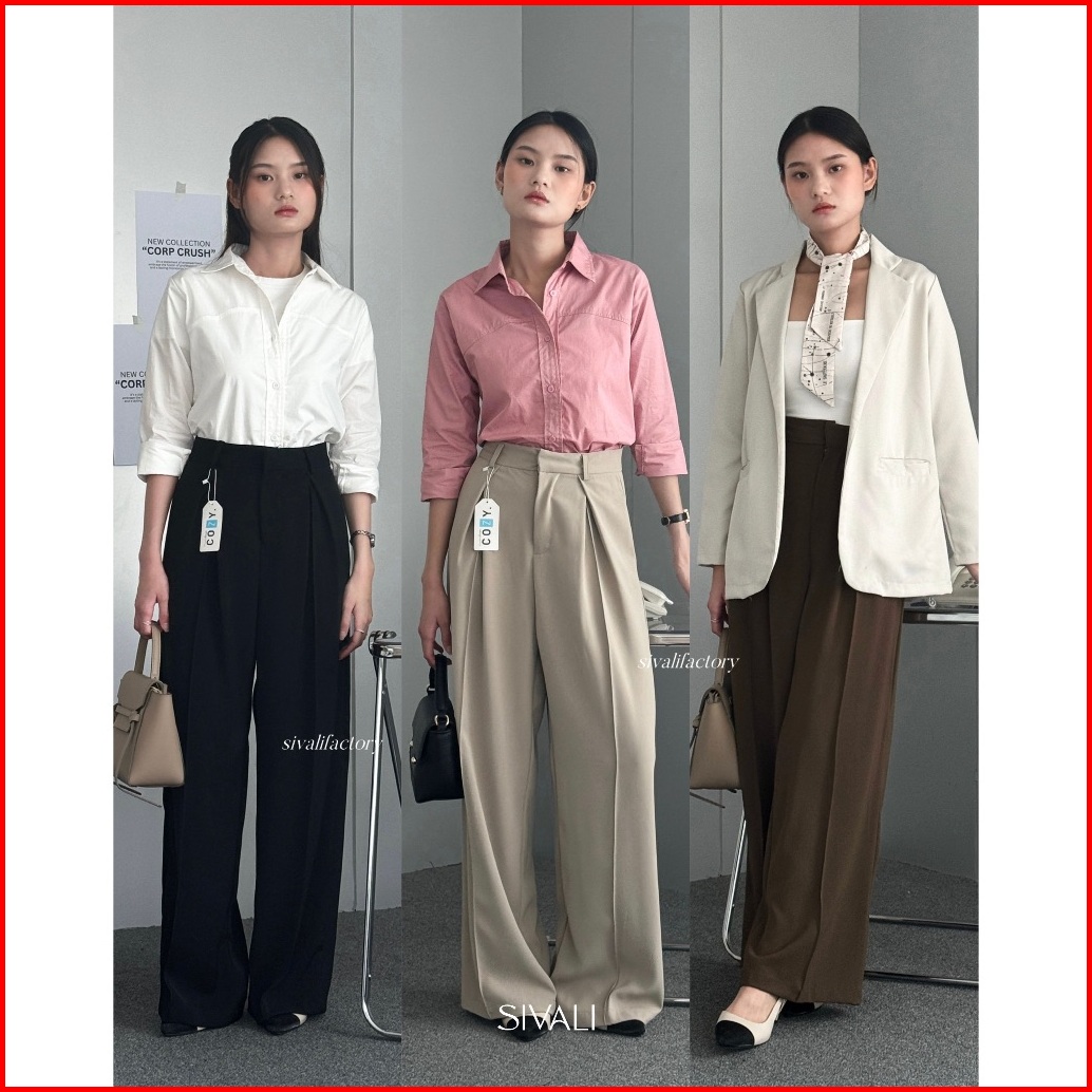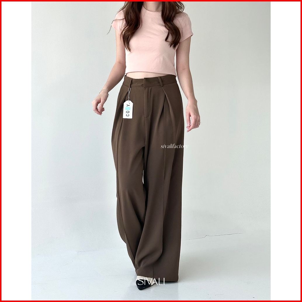 Sivali Orin Pleated Pants - Highwaist Cullote Polyester - Celana Kulot Panjang Wanita Anti Kusut - Celana Kantor Formal