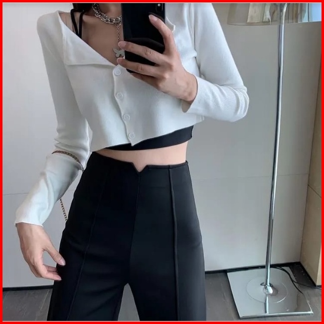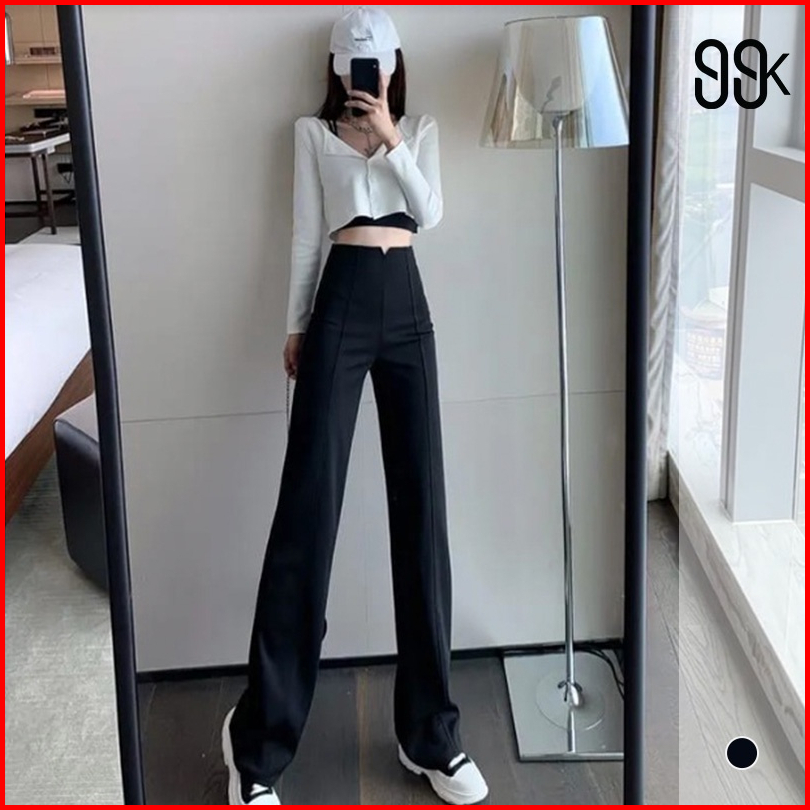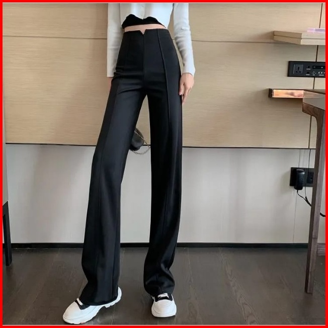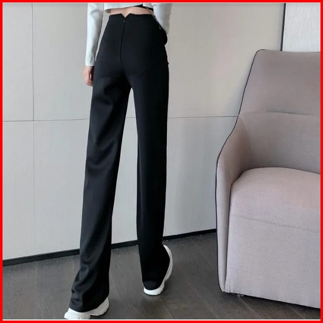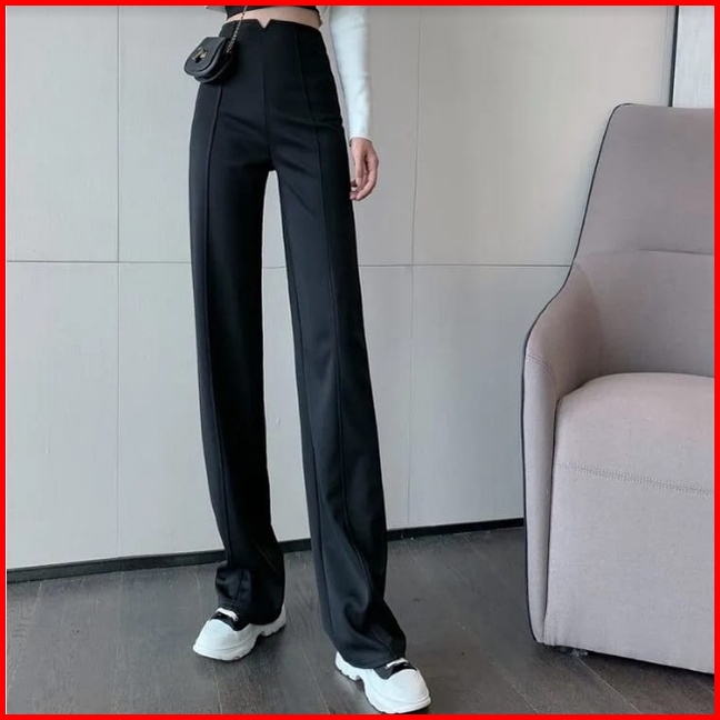 High Waist Full Length Straight Pants 1634 S M L Xl