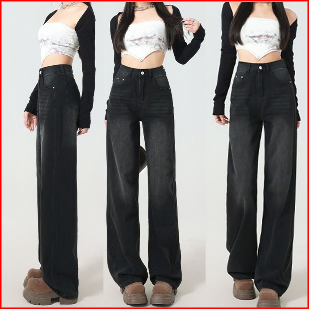 Celana Jeans Wanita Korea Panjang Model Longgar Kekinian High Waist Murah Celana Jeans Panjang Wanita Kulot