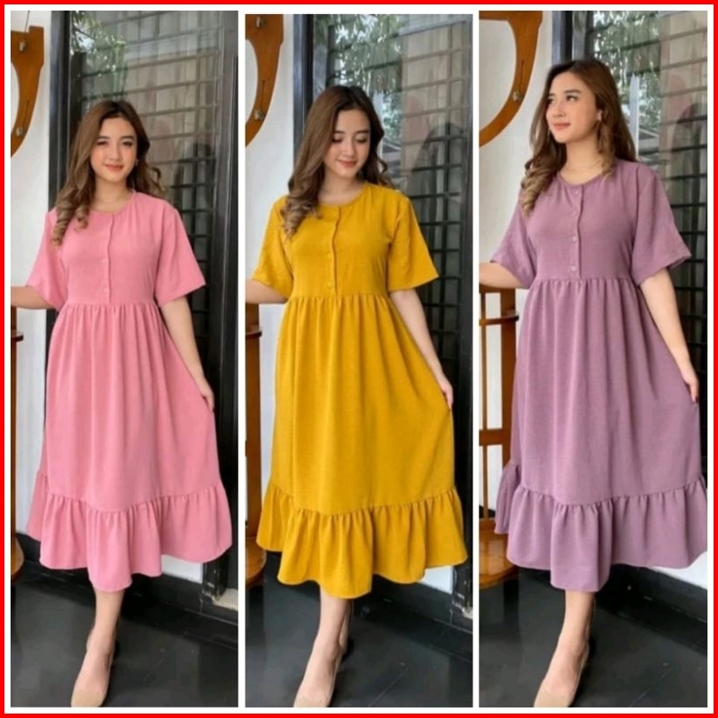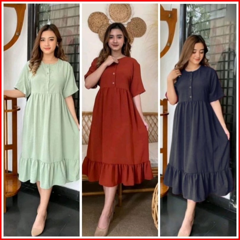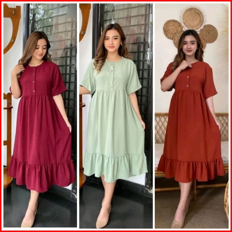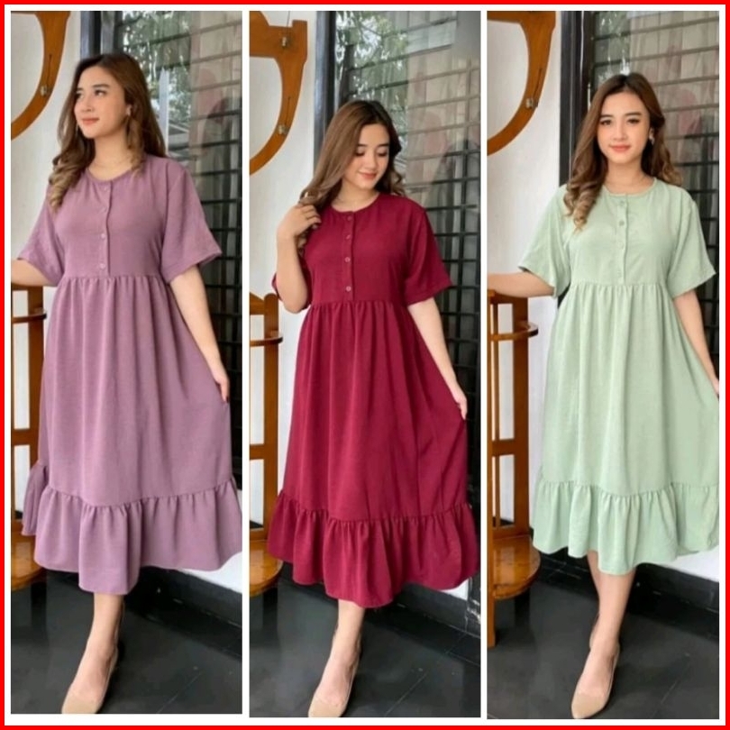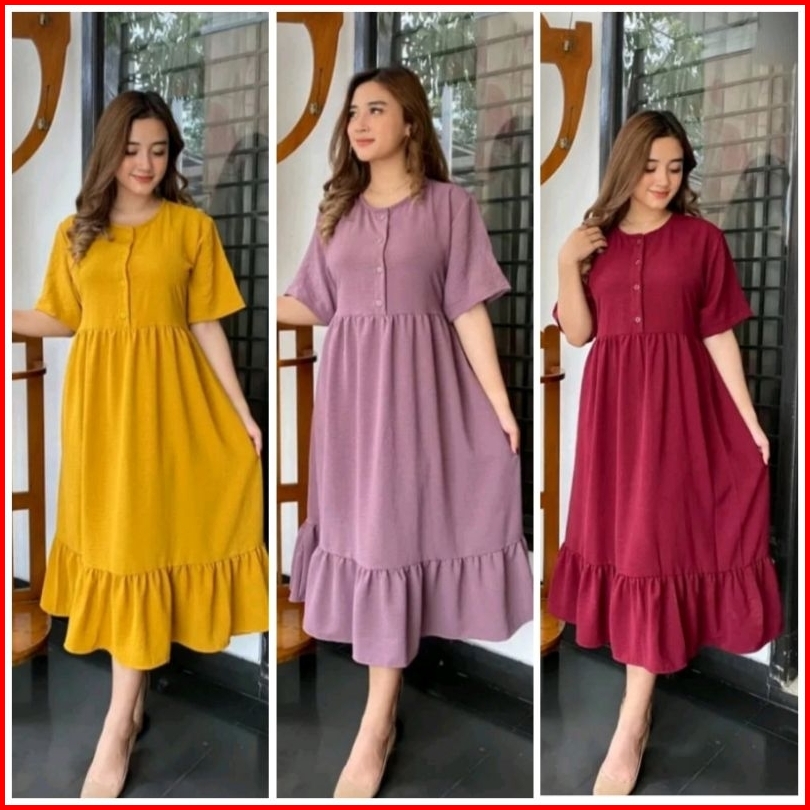 Daster Viral Paket 3 Pic Dress Wanita Bumil Busui Bahan Crinkle Airflow Ld 120 Nadira Dress Crinkle