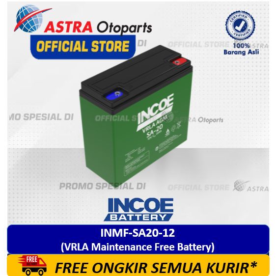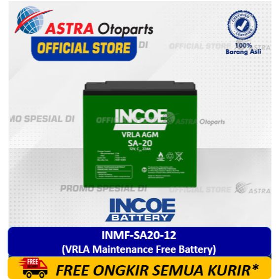 Baterai / Aki Deep Cycle INMF-SA20-12 (20 Ah - 12 Volt) Merk INCOE - untuk Sepeda Listrik, Motor Listrik, Mobil-mobilan