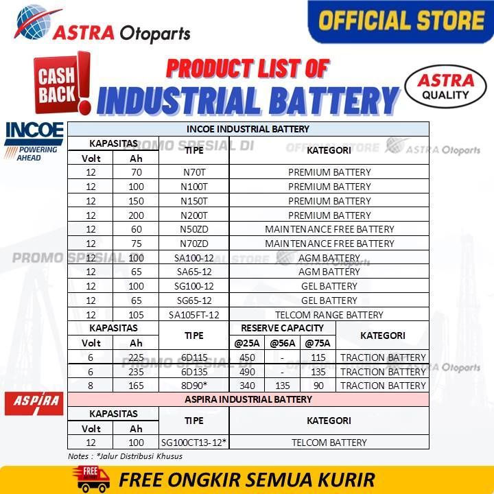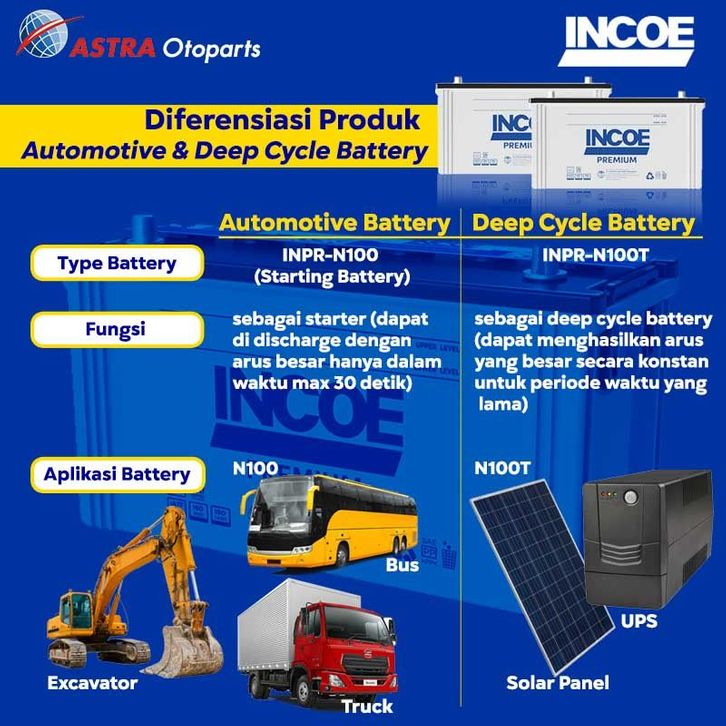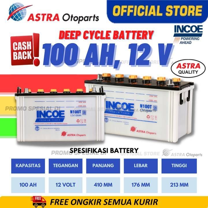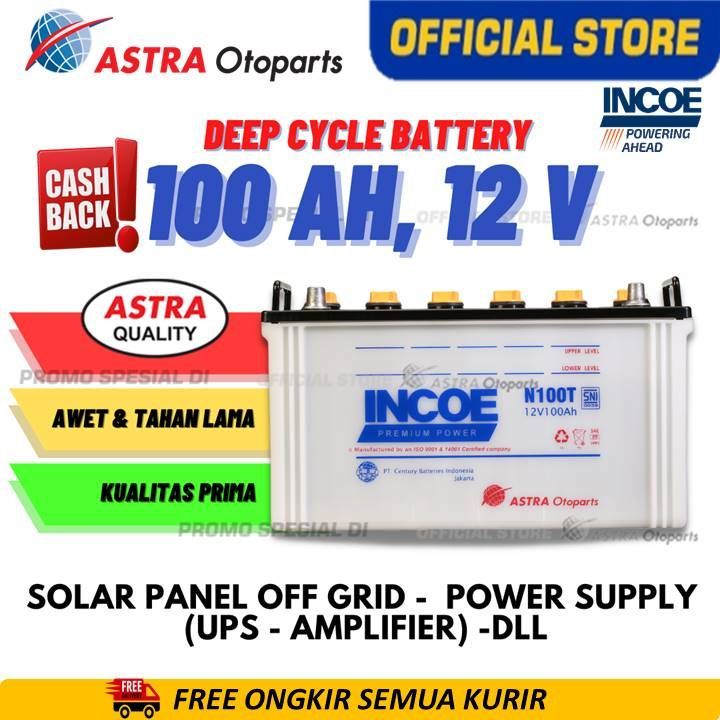 Baterai / Aki INCOE PREMIUM 100 Ah - 12 Volt, Deep Cycle Battery/Accu - untuk Solar Panel Off Grid (tenaga surya), Powe