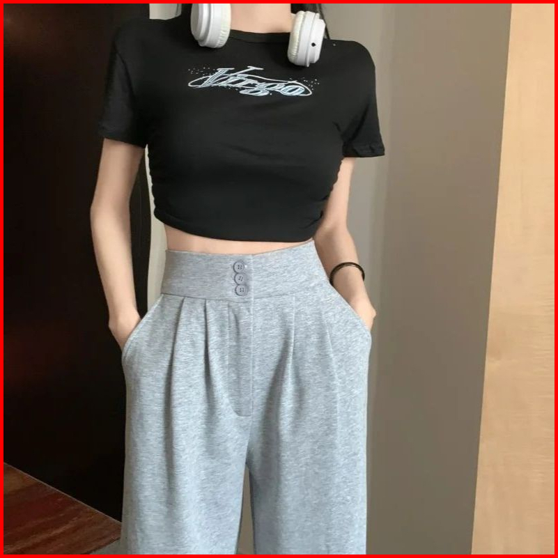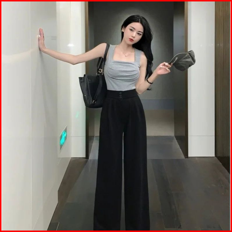 Summer Casual High Waist Loose Wide Leg Pants 1766 S M L Xl
