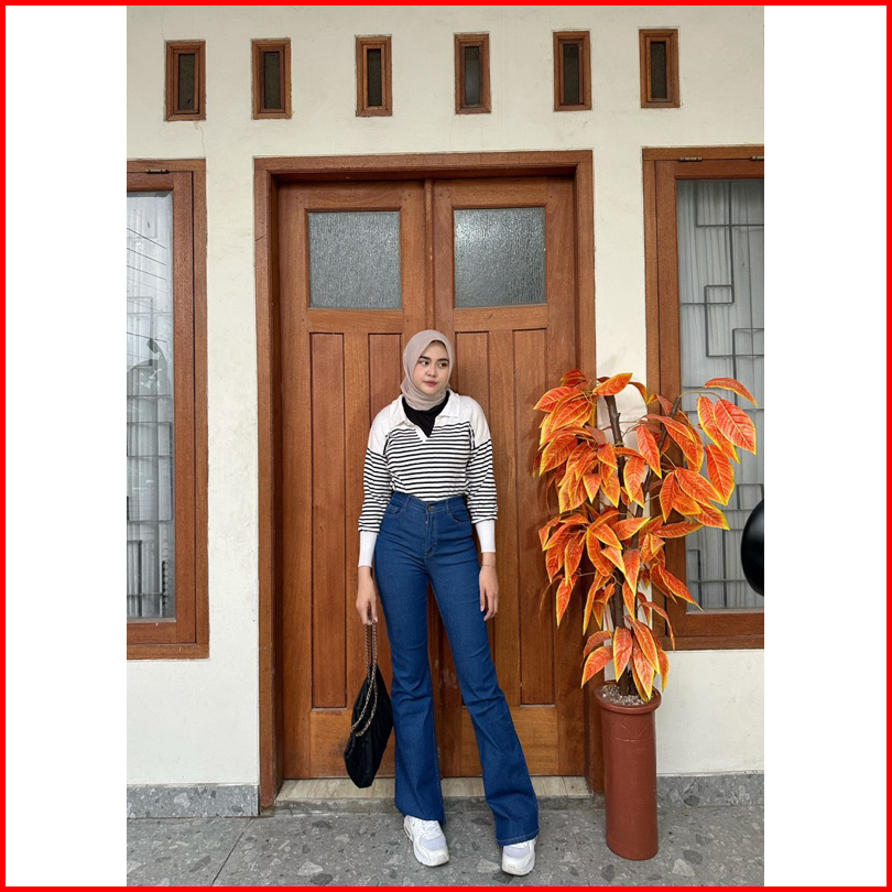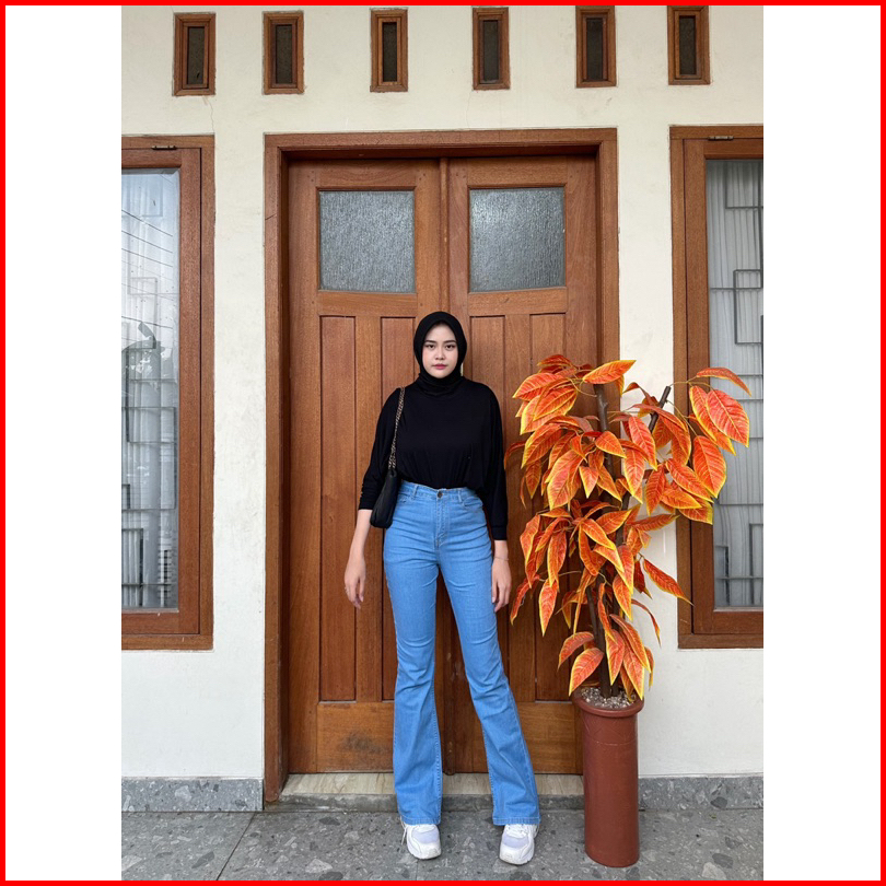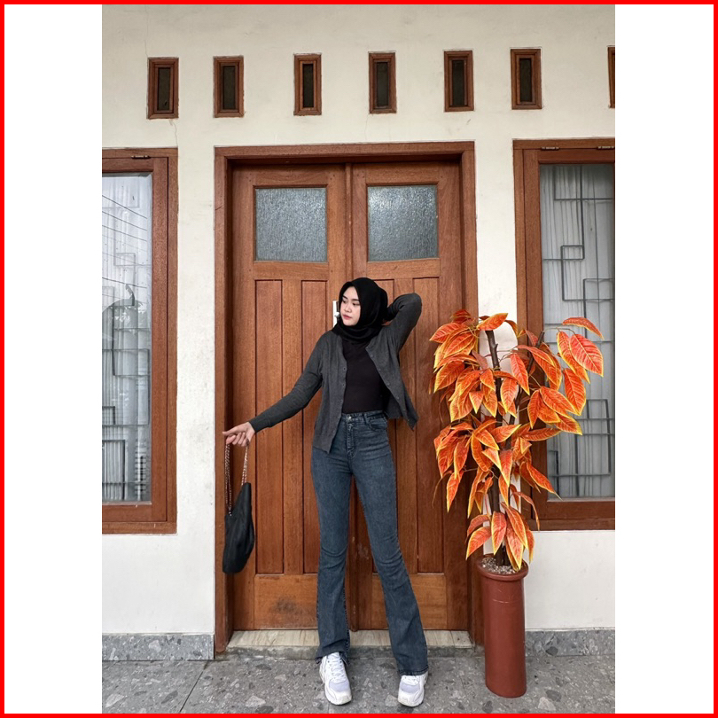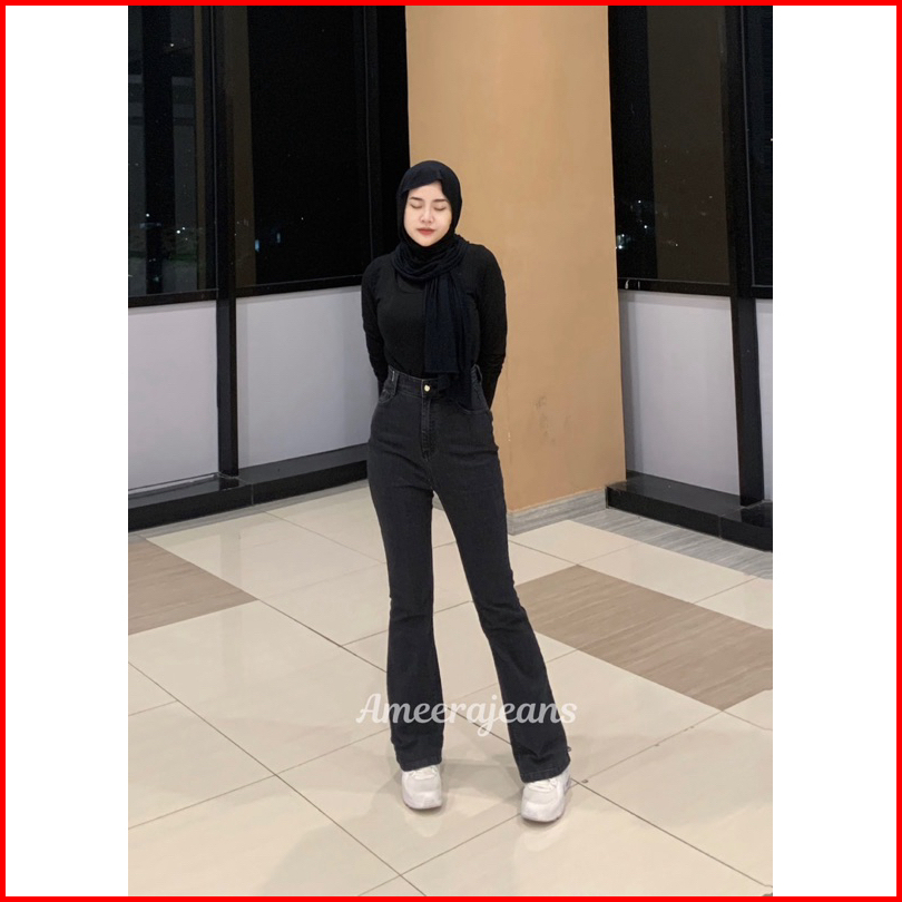 Ameera Jeans - Celana Hw Cutbray Jeans Stretch Choco