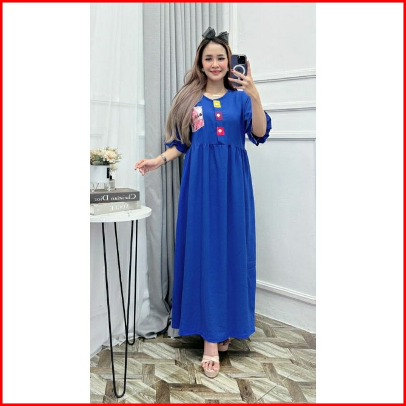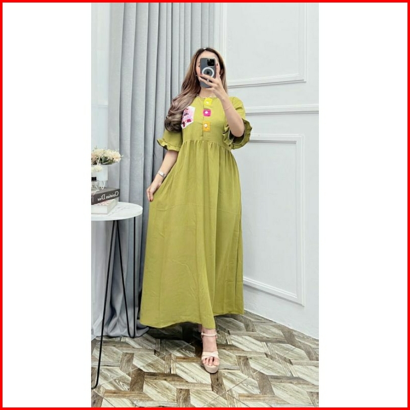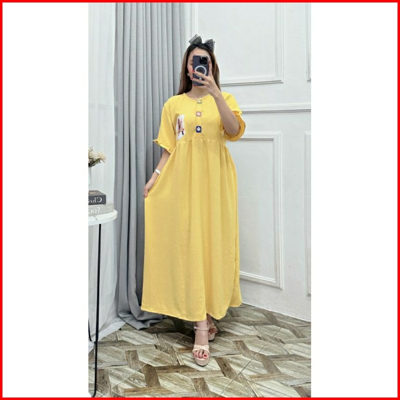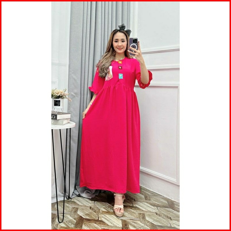 Daster Terbaru Vellia Saku Pelangi Crinkle Dress Lengan Rampel