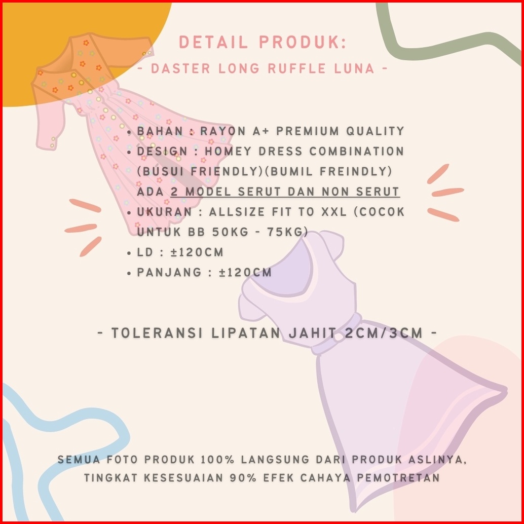 Luna Daster Long Ruffle Busui Serut Rayon Premium By Ademin.co Daster Panjang Semata Kaki
