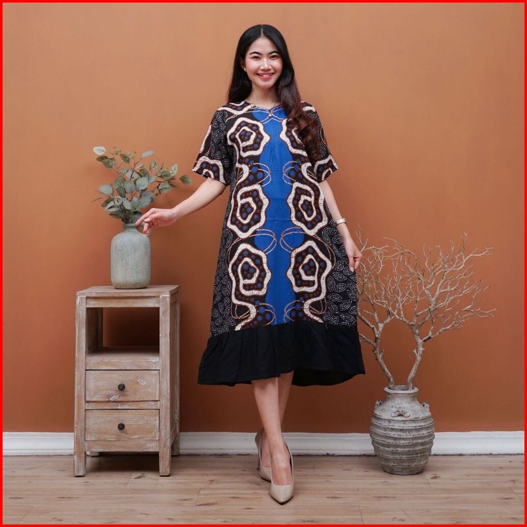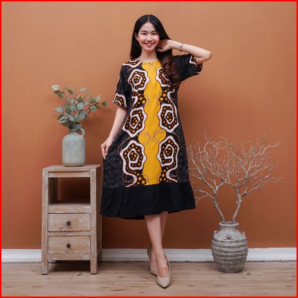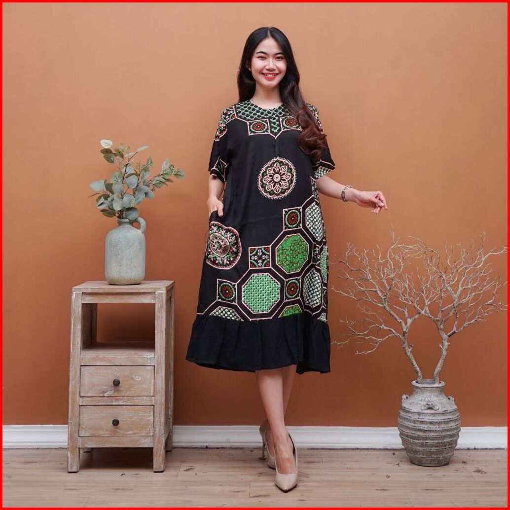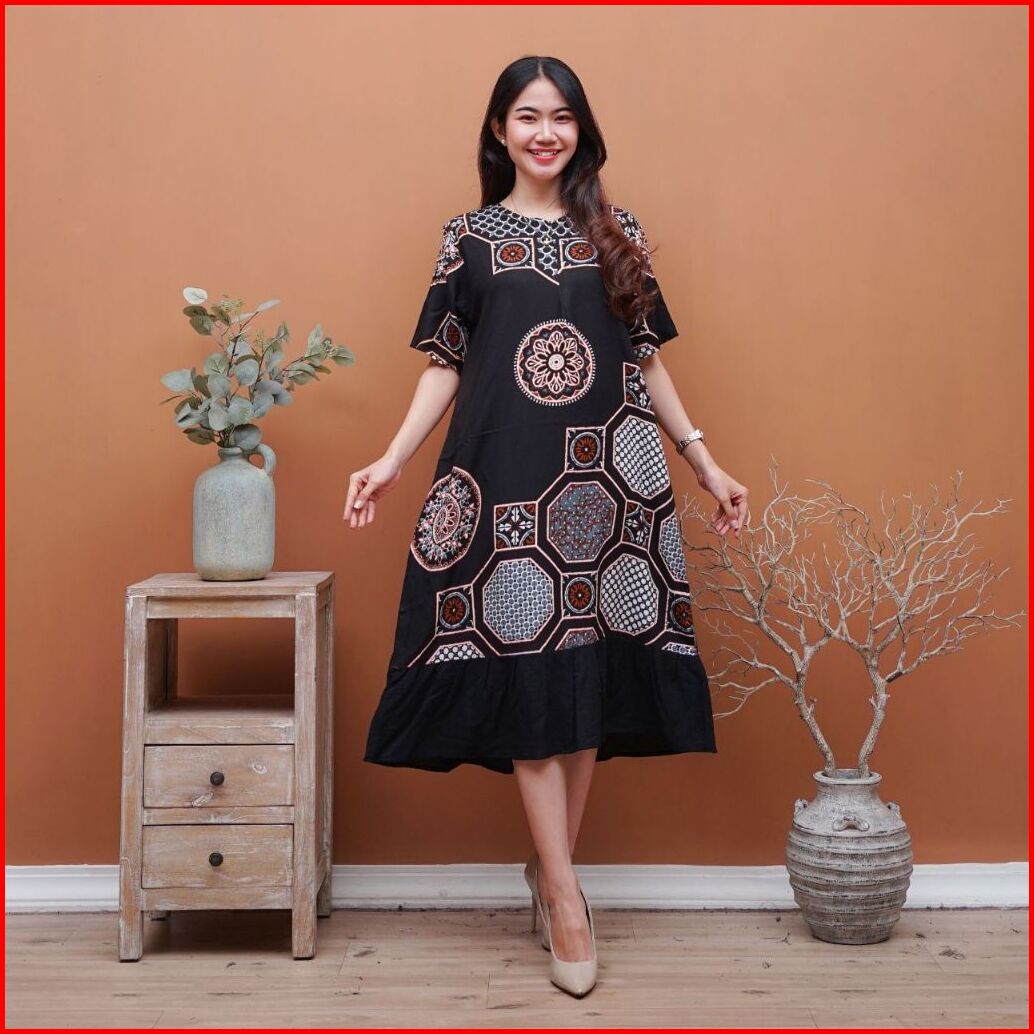 Daster Rempel Marcella Print - Lengan Pendek - Motif Abstrak - Leher Kancing - Bumil - Busui