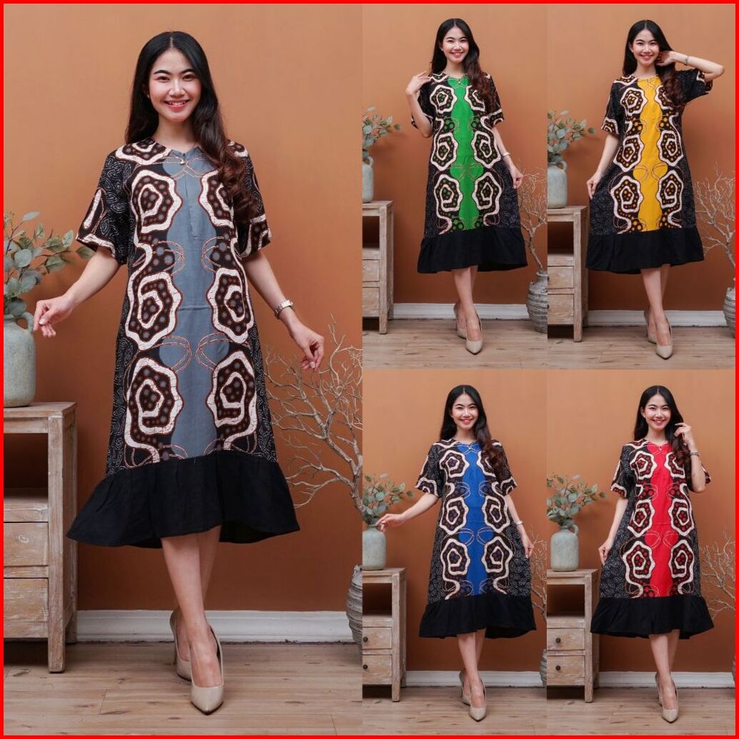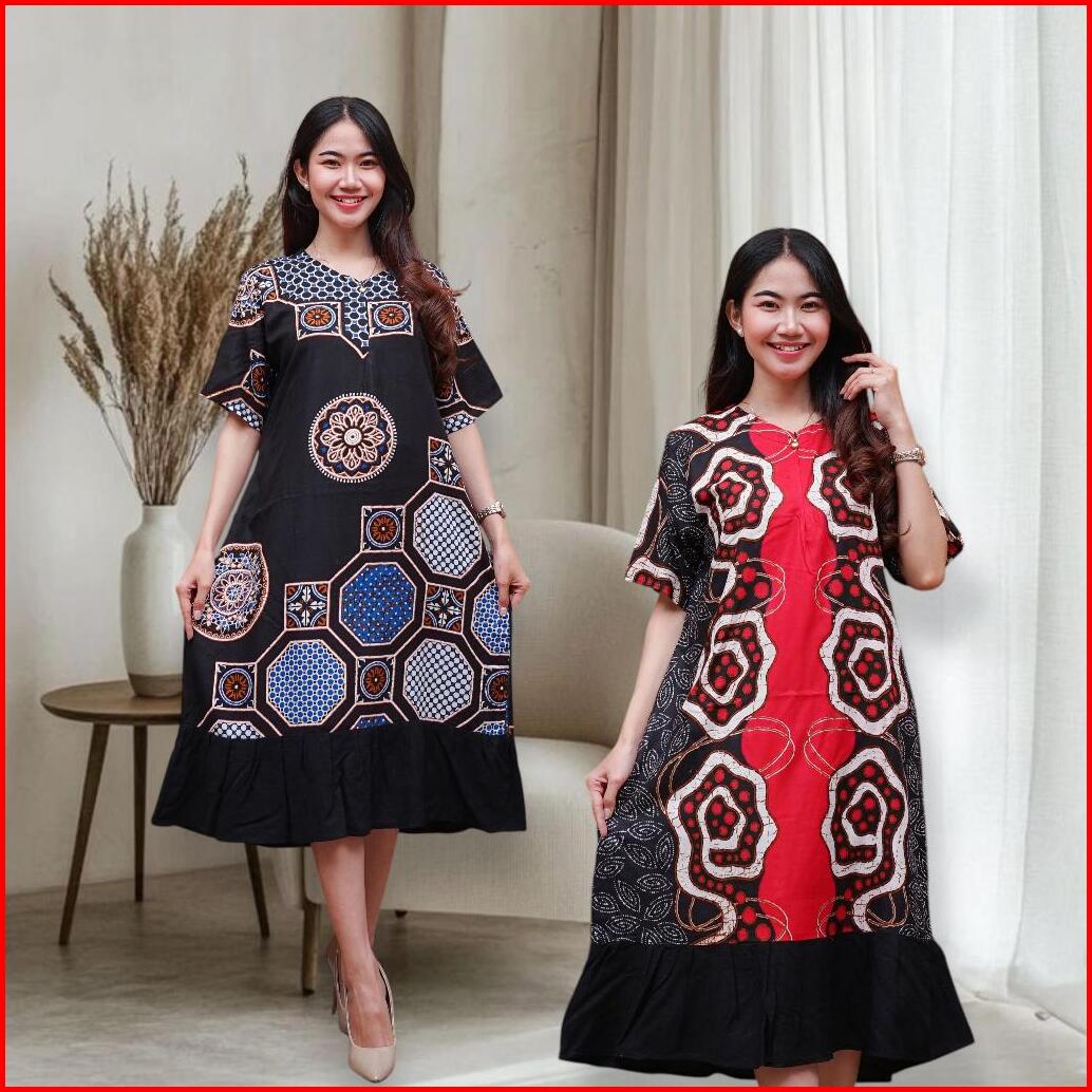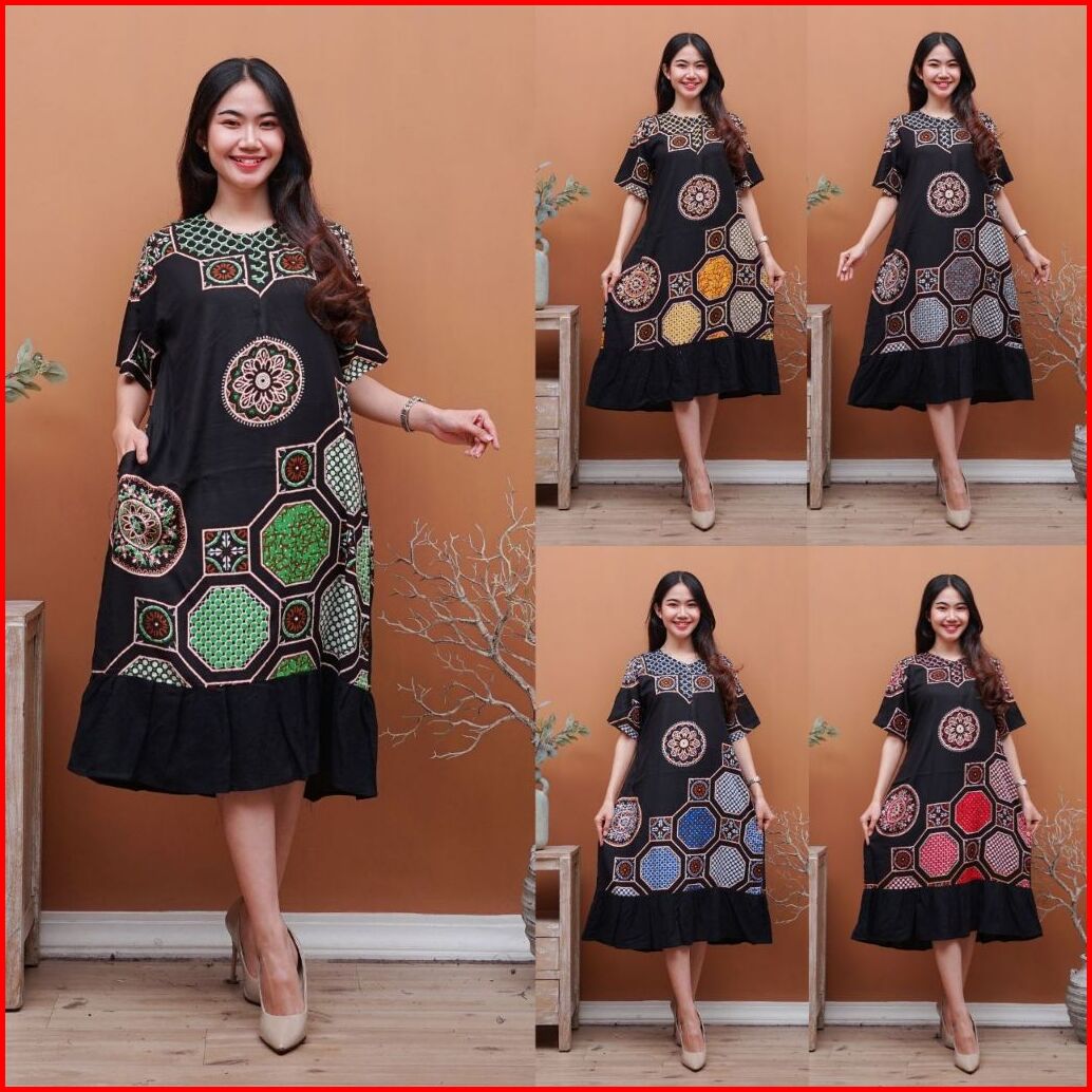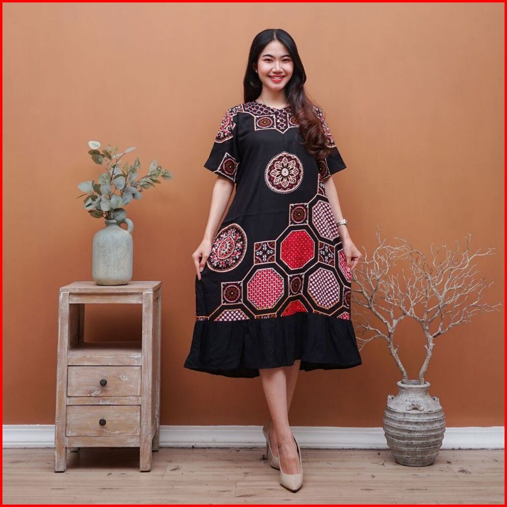 Daster Rempel Marcella Print - Lengan Pendek - Motif Abstrak - Leher Kancing - Bumil - Busui