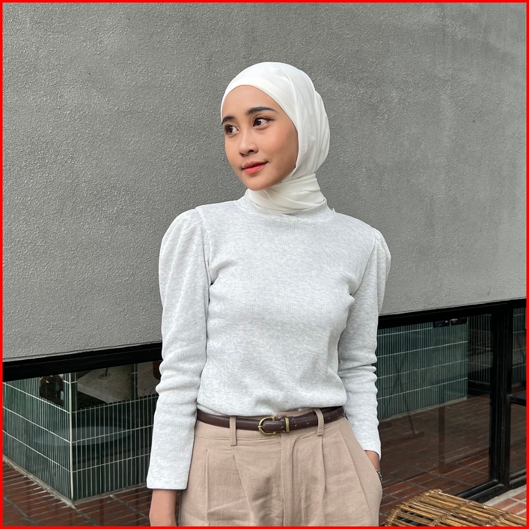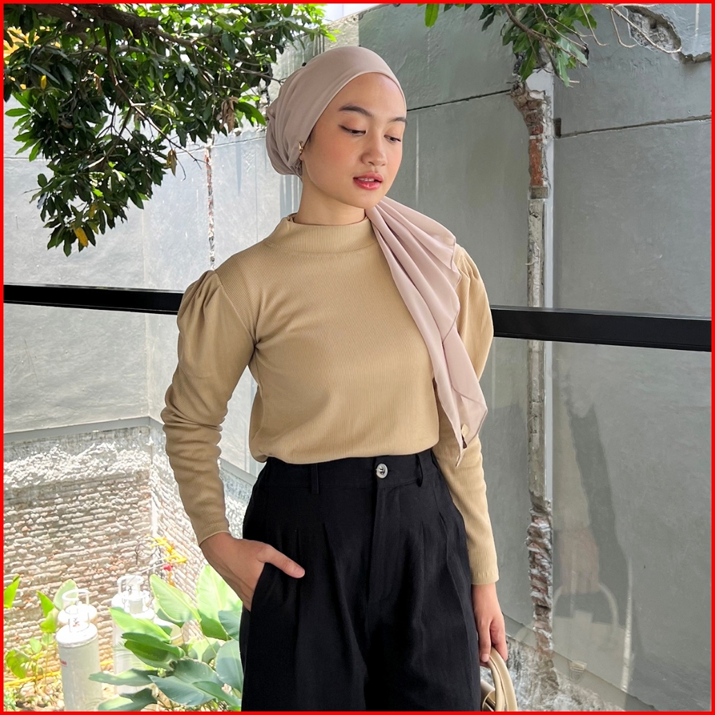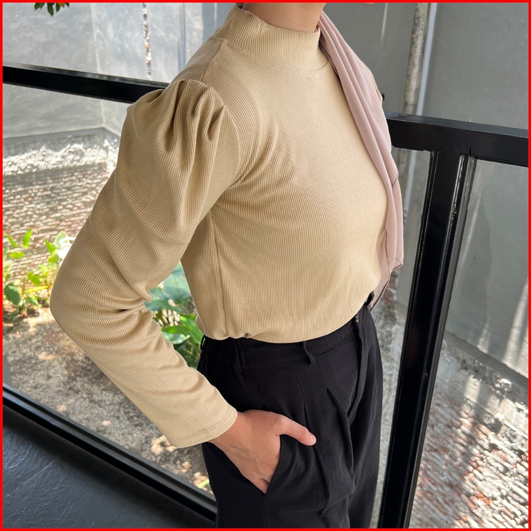 Yeppuoutfit - Marie Top Inner Manset Lengan Panjang Polos Detail Lengan Puff Rib Blouse Basic