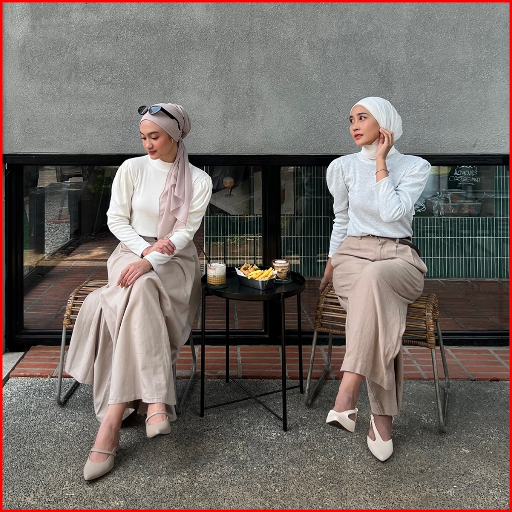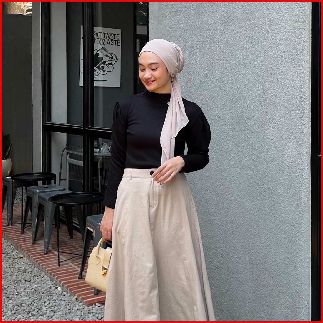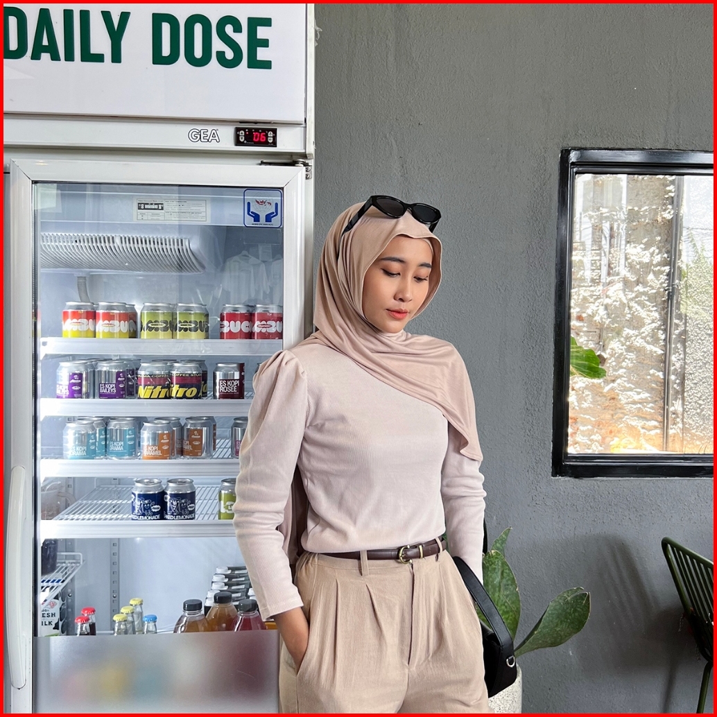 Yeppuoutfit - Marie Top Inner Manset Lengan Panjang Polos Detail Lengan Puff Rib Blouse Basic