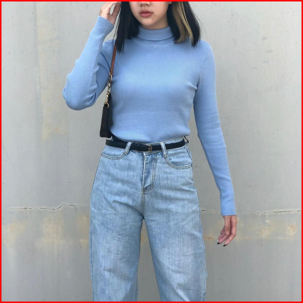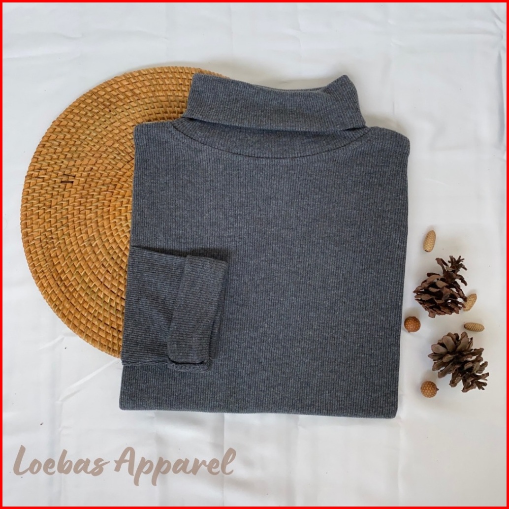 Kaos Turtleneck Leher Tinggi Wanita Lengan Panjang Bahan Rib Premium Tebal Lembut Dan Adem