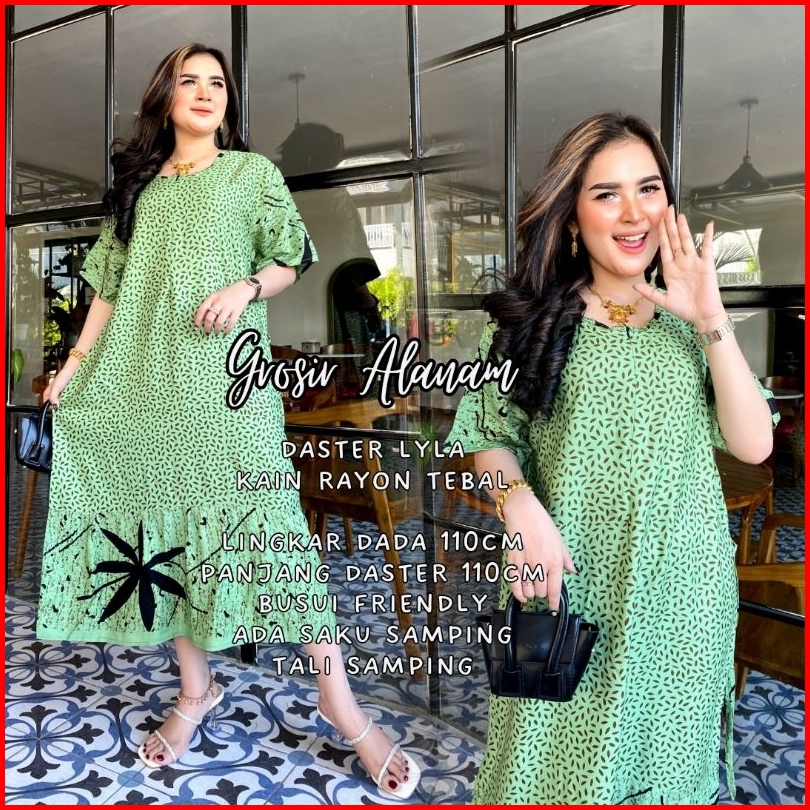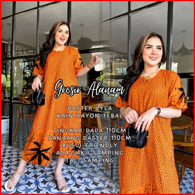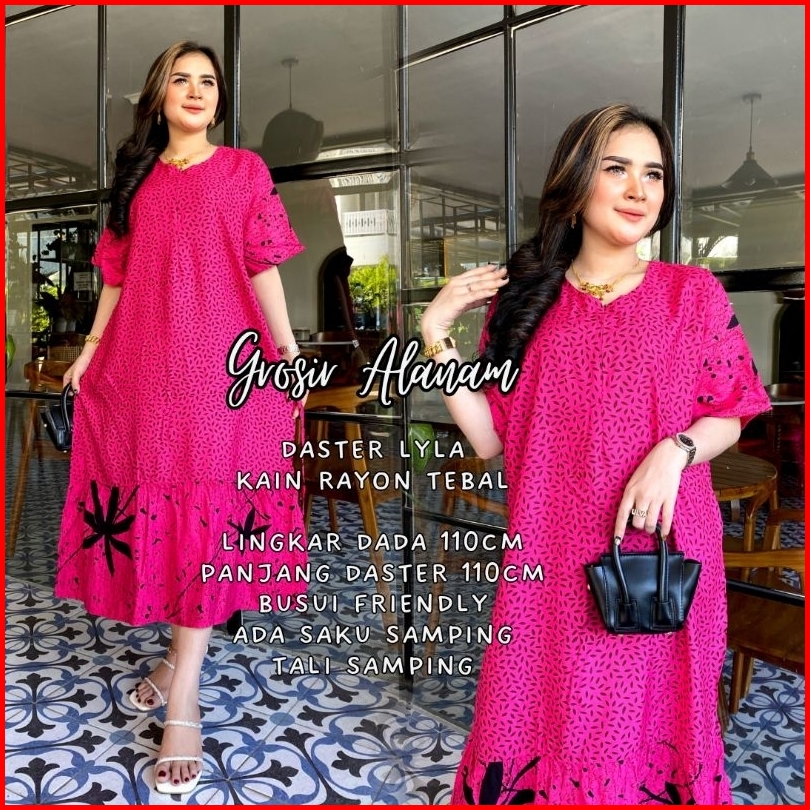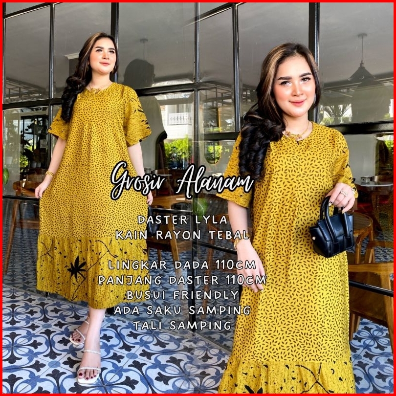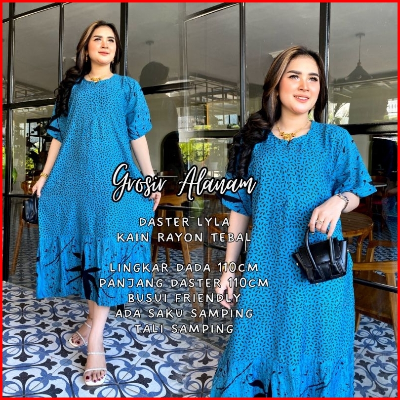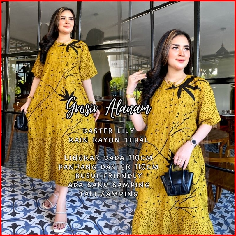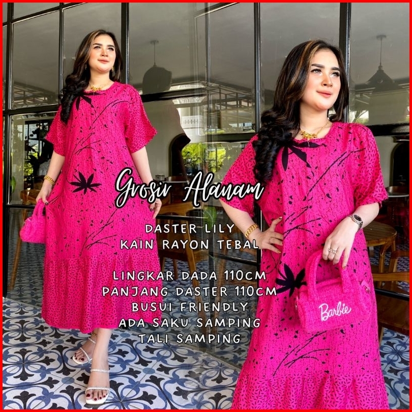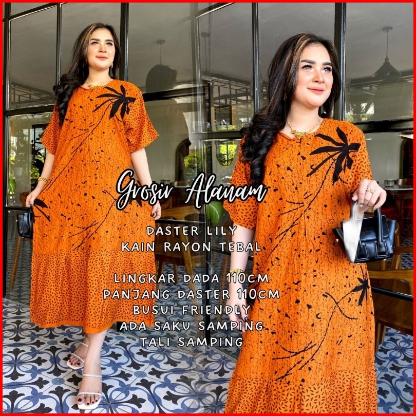 Daster Lila Lily Dan Untir - Daster Batik Wanita Maura Cap - Motif Kekinian Lengan Pendek Rayon Busui Resleting Depan -