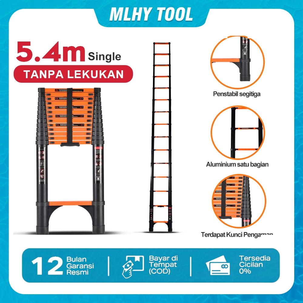 MLHY Tangga Lipat Aluminium Teleskopik Telescopic Single Ladder Tanpa Lekukan 5.4M Best Seller Terbaru Murah Tanpa Dp 0