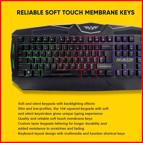 Armaggeddon Keyboard Mouse Gaming Combo Ak6770 Kalashnikov - 3200 Cpi Mouse - Garansi Resmi 2 Tahun