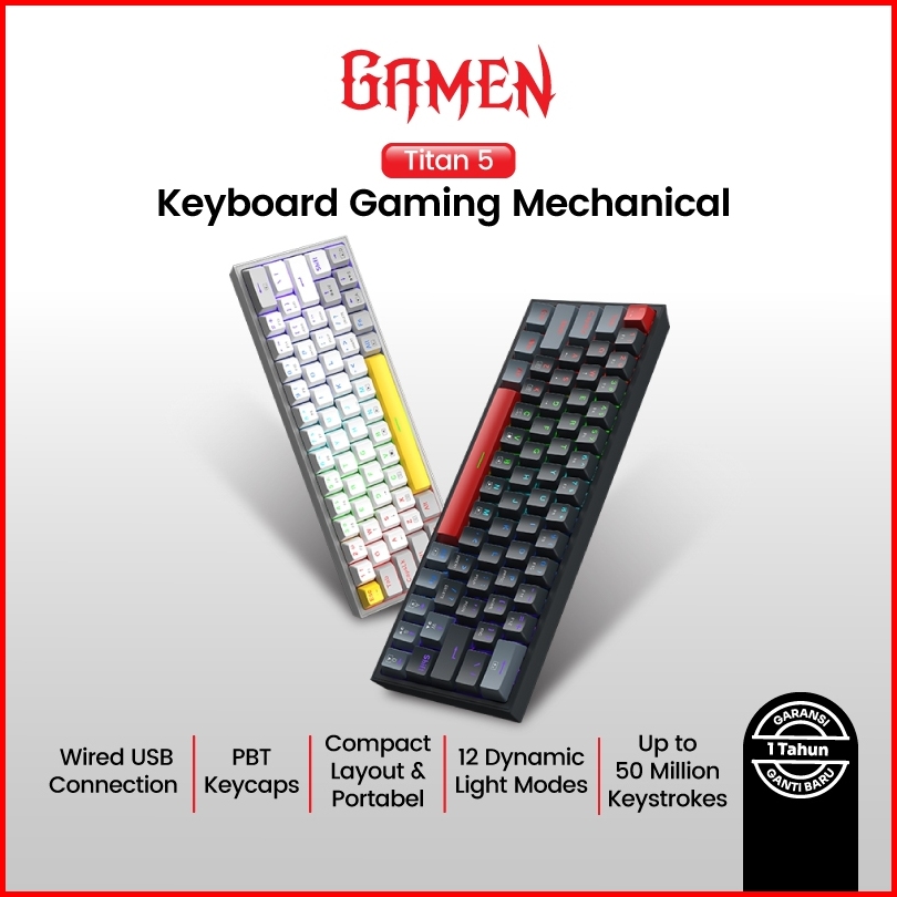 Best Seller Keyboard Gamen Titan 5 Keyboard Mechanical Gaming Rgb 60 Layout Kabel Usb-c Kompatibel Semua Os Windows Mac