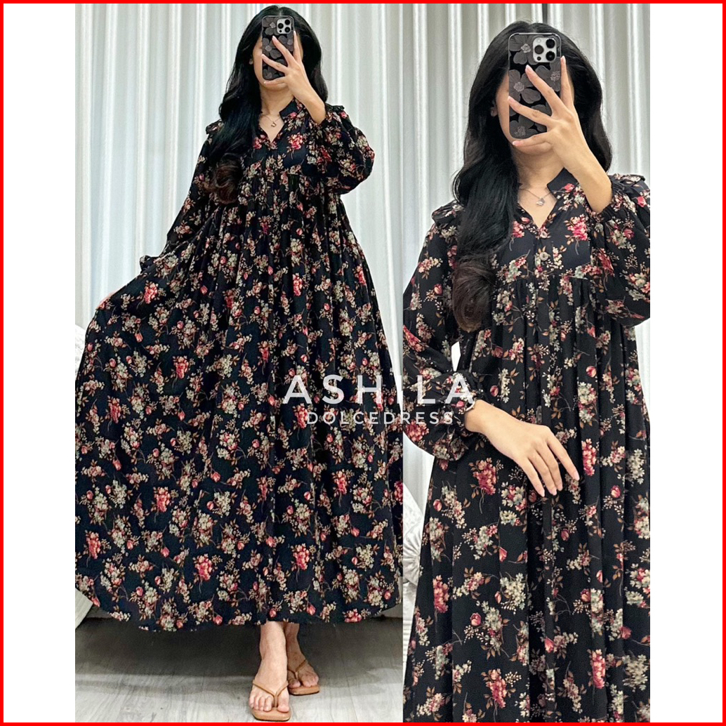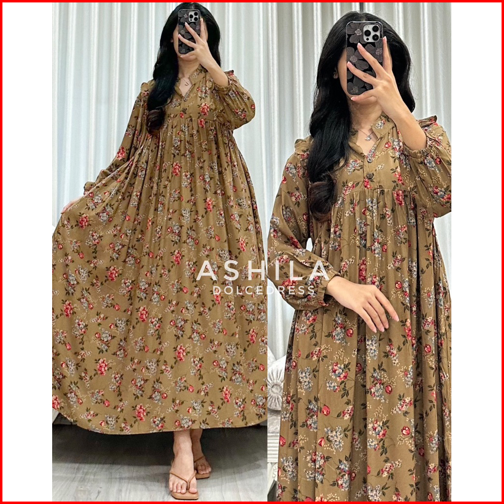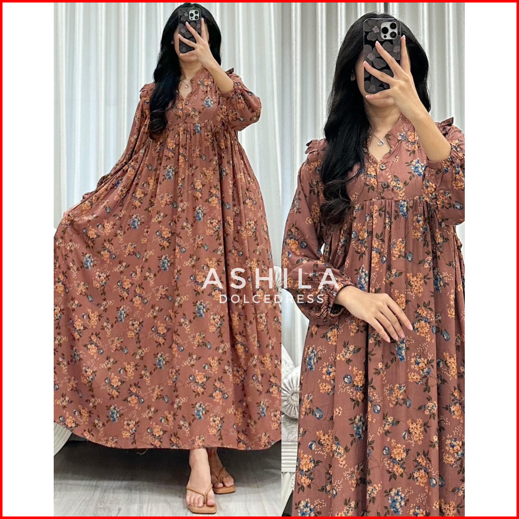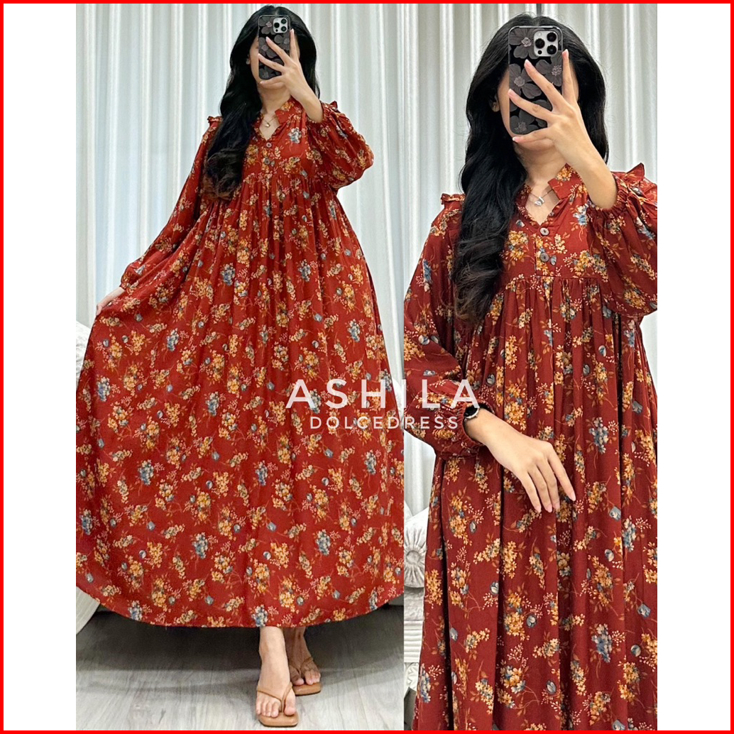 Daster Arab Dolce Ashila Midi Dress Rayon Motif Busui Bumil Nyaman