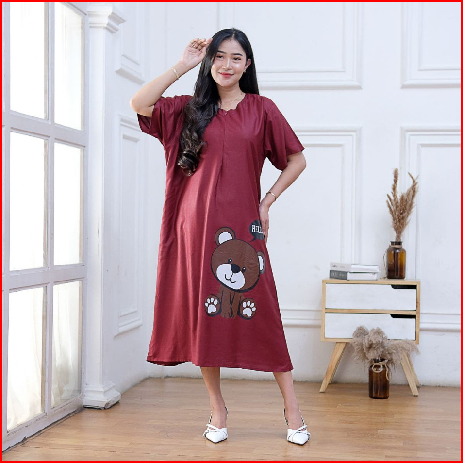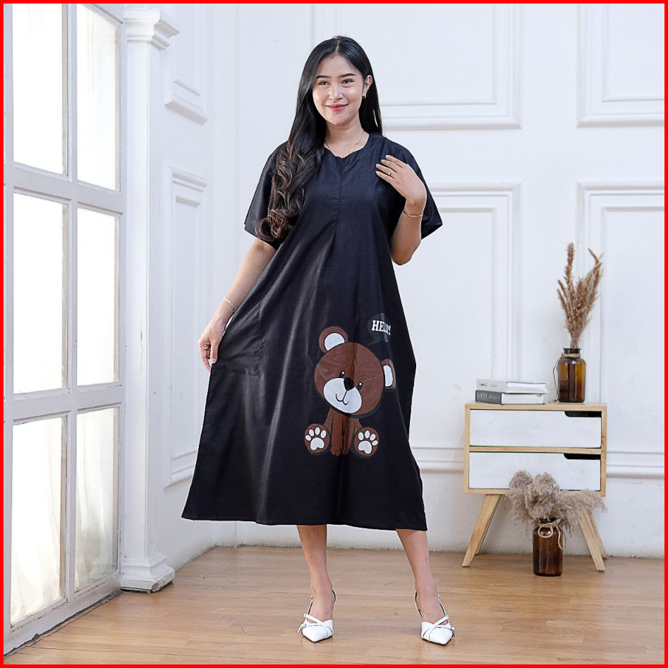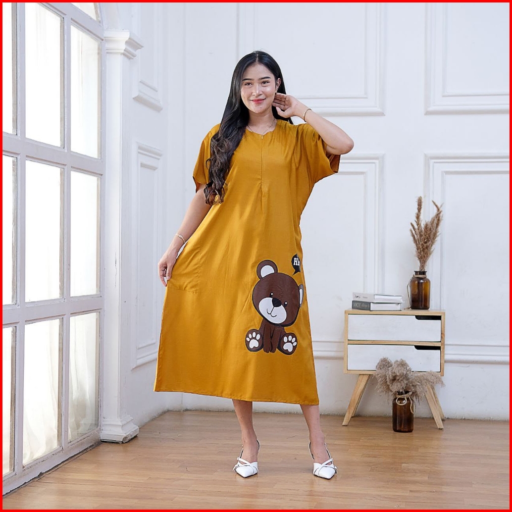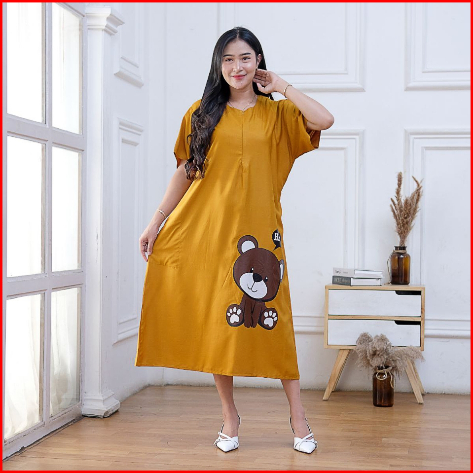 Daster Wanita Kekinian Terbaru Viral Busui Motif Bear Bahan Adem Rayon Grade A