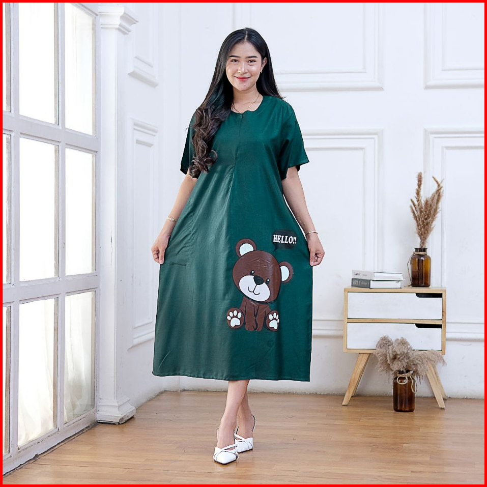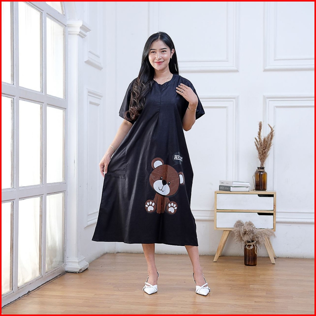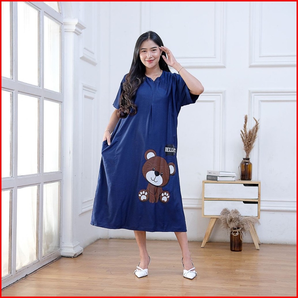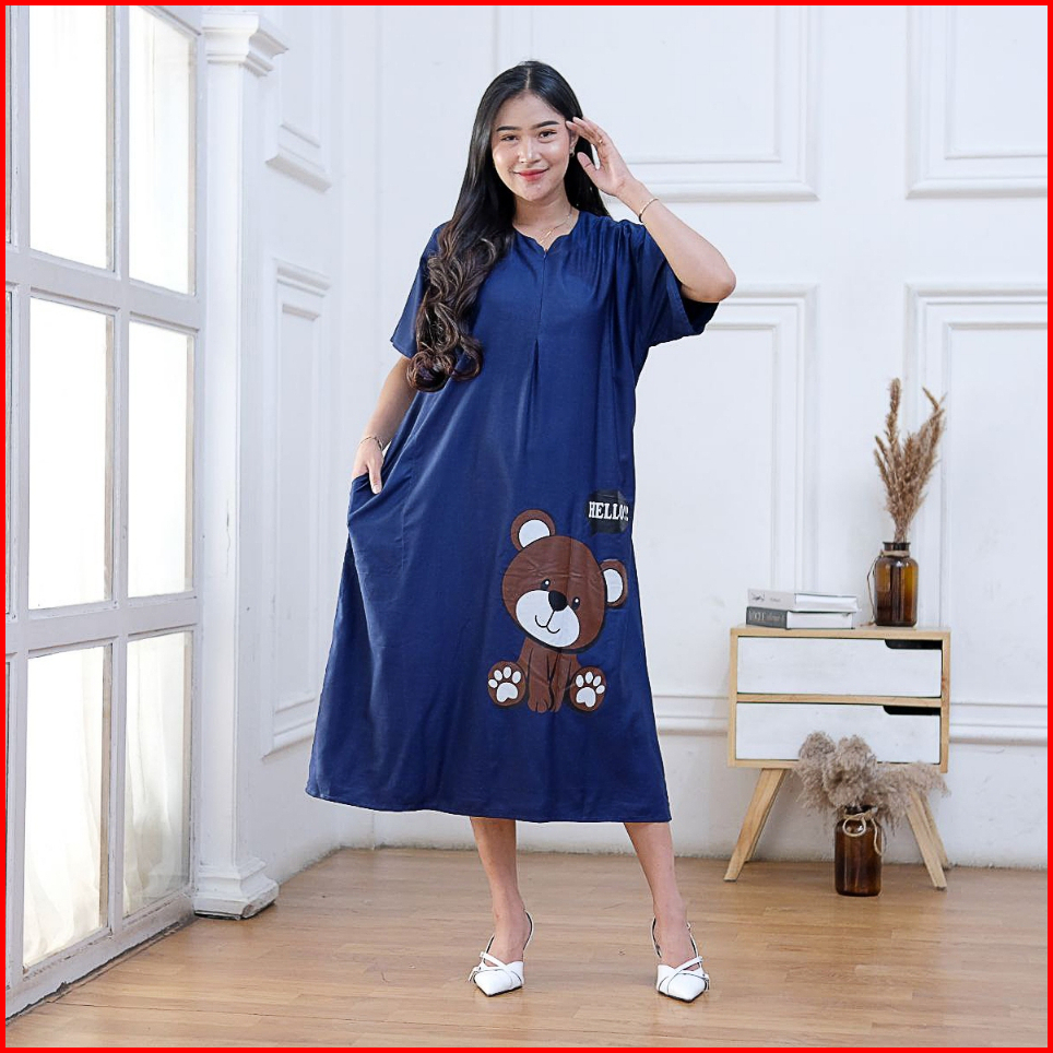 Daster Wanita Kekinian Terbaru Viral Busui Motif Bear Bahan Adem Rayon Grade A